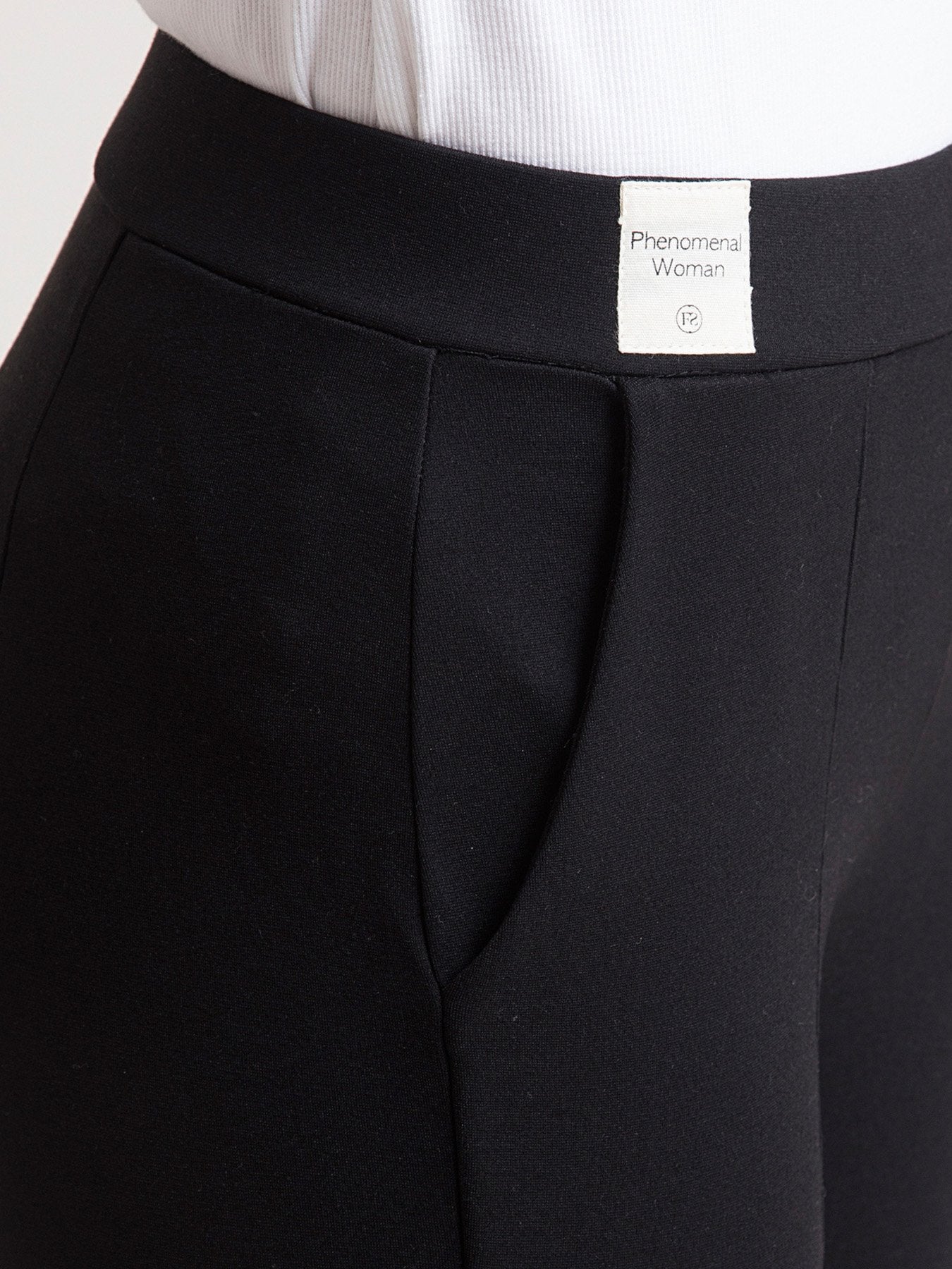 These trademark, black, panelled, knitted pants are mid-rise, have slant pockets and tape detail with an inspirational quote "Phenomenal Woman" to motivate you. A Nylon Rayon knit blend, these are breathable, stretchable, comfortable, anti-wrinkle and anti-pill.