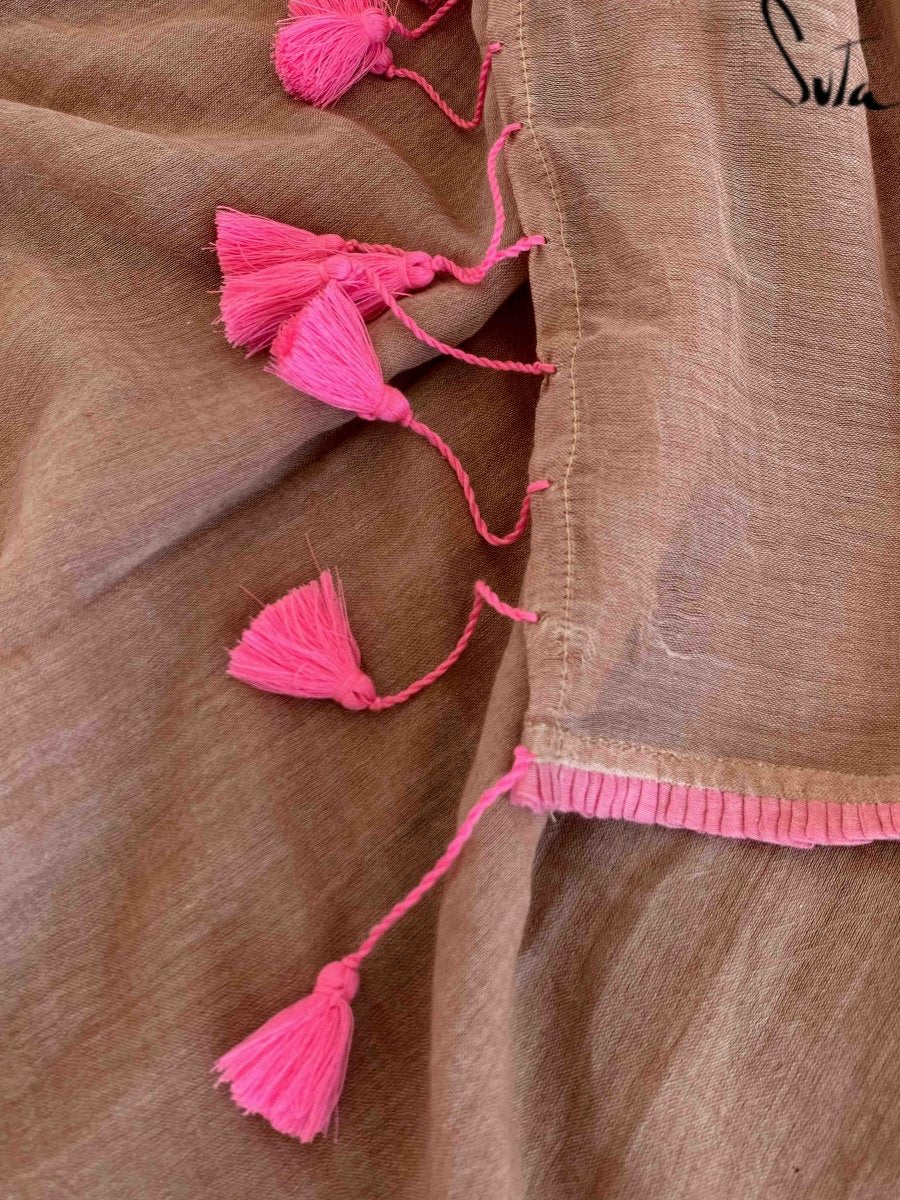 This amazing brown made in heaven mul with little frills on the border is pure gorgeousness!