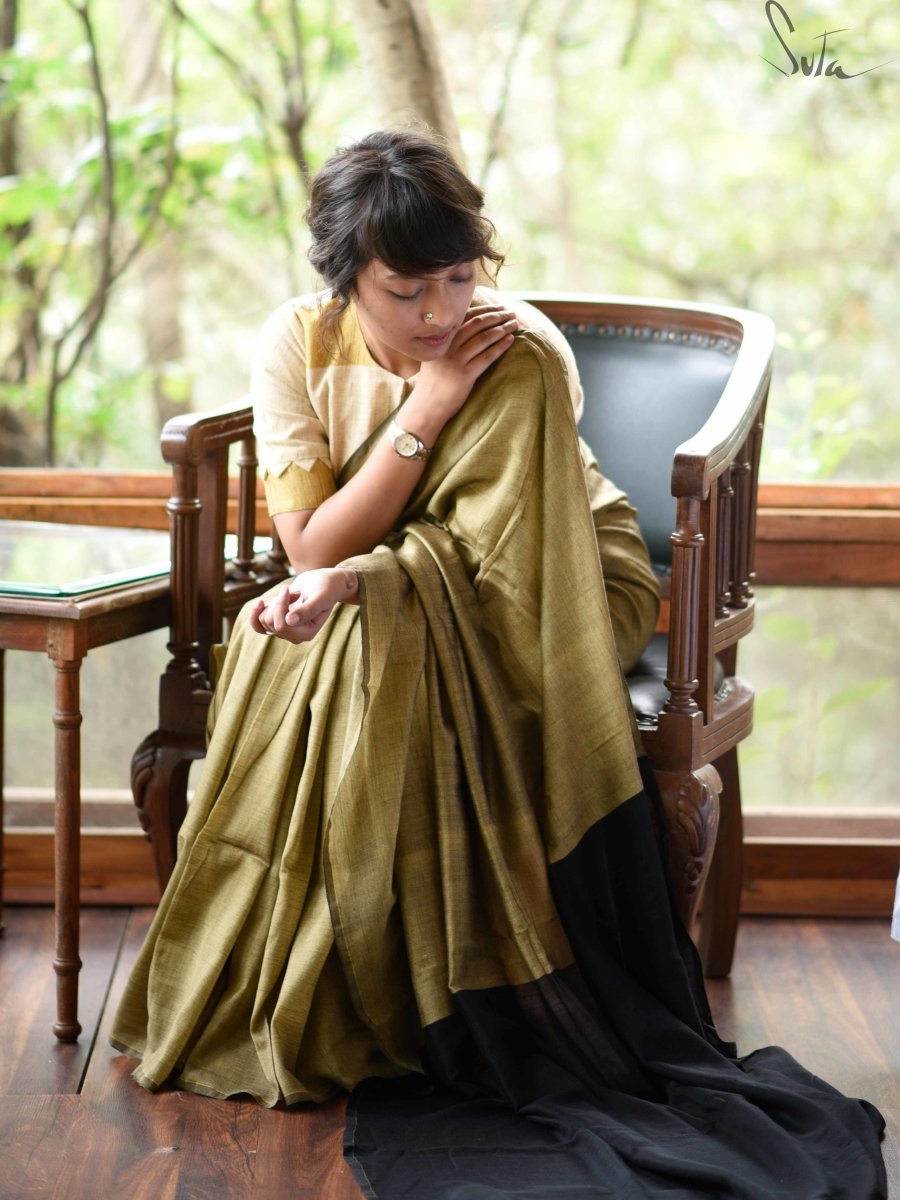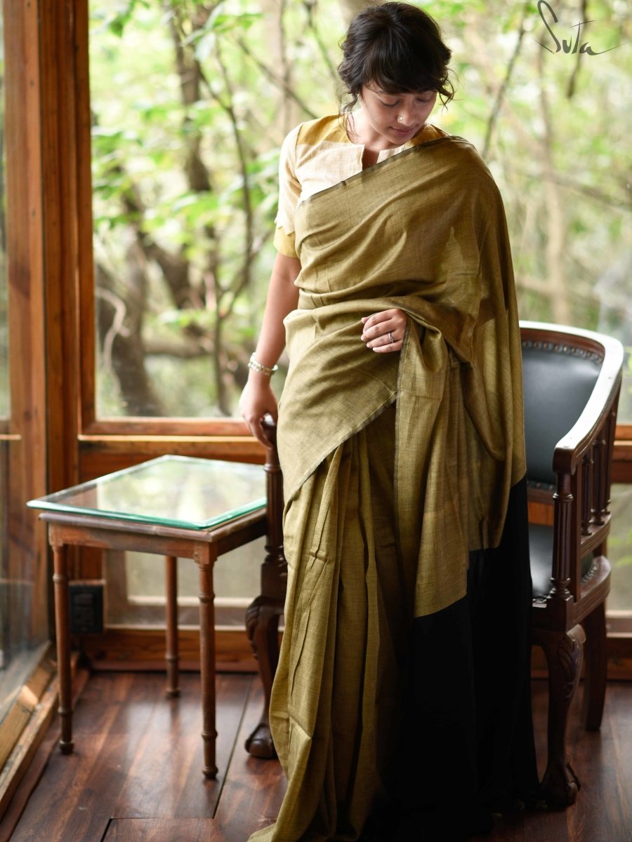 Cotton fabric dates back to some of the most ancient civilisations and it has a strong presence in the modern wardrobe as well. The softness and lightness of cotton combined with its strength and versatility makes it one of the most popular choices, especially for the Indian climate. We took this simple, elegant fabric and combined it with acrylic for that added sheen and voila! We love what we see and the saree falls so beautifully that it feels like second-skin!On the whole, this blend of fabric is 70% cotton, 30% acrylic and 100% amazing!