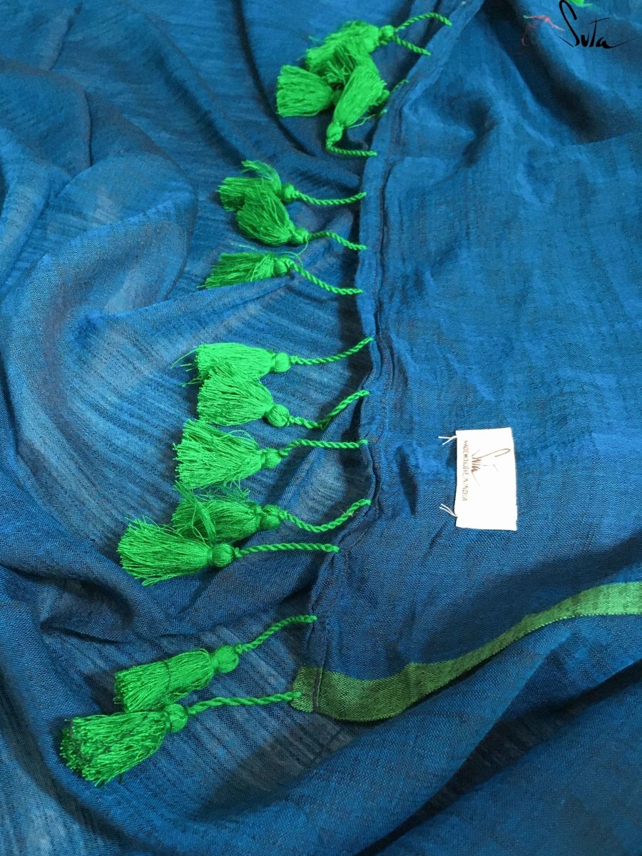 For Suta products, viscose fibre as weft is woven with cotton fibre as warp to create a fabric that is a magical blend of the comfort of cotton and the subtle shine of viscose. This fabric feels beautifully soft to the skin.