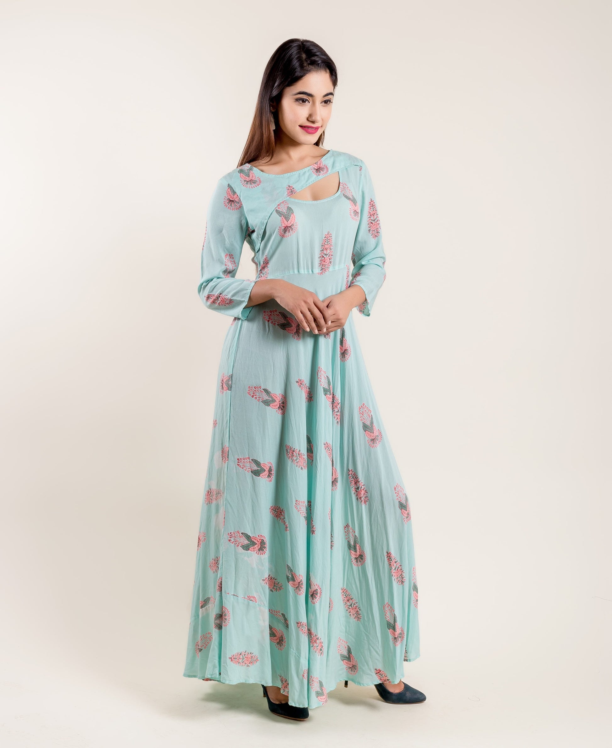 Aqua Pink Flared Floor Length Indo Western Floor Length Dress