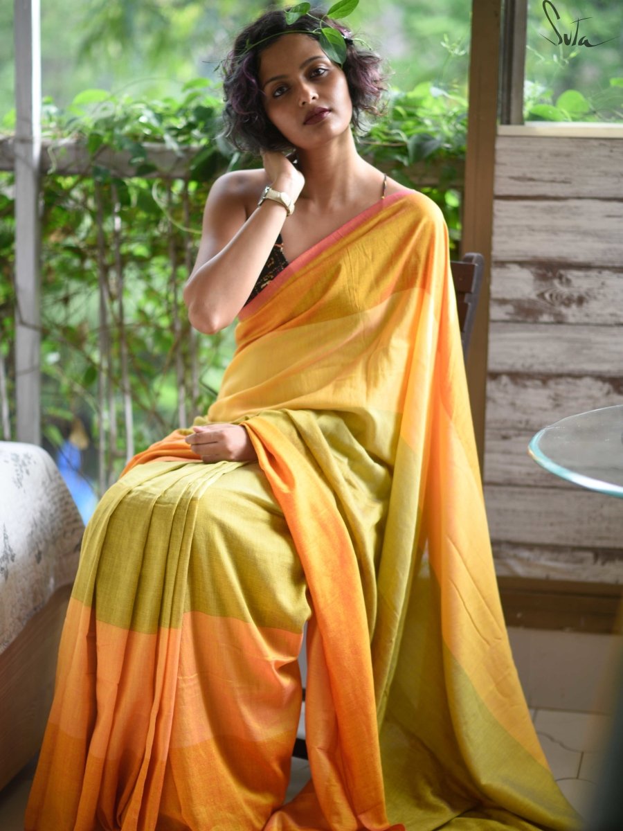 Cotton fabric dates back to some of the most ancient civilisations and it has a strong presence in the modern wardrobe as well. The softness and lightness of cotton combined with its strength and versatility makes it one of the most popular choices, especially for the Indian climate. We took this simple, elegant fabric and combined it with acrylic for that added sheen and voila! We love what we see and the saree falls so beautifully that it feels like second-skin!