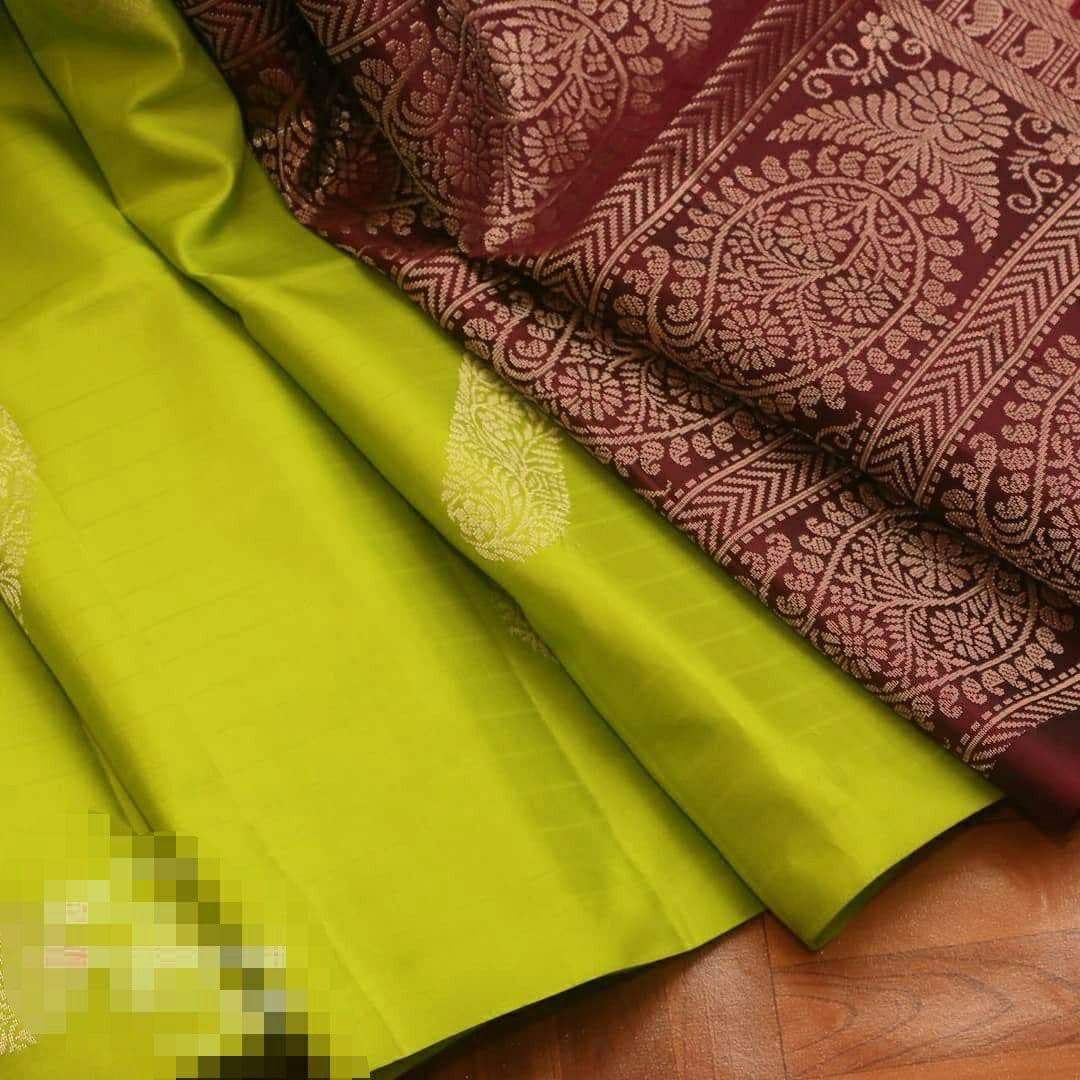 Valiba Kanchi Soft Silk Floral Brocade Saree With Attached Blouse 6.3m saree ( Include 5.5m Saree and 0.80m Blouse )
