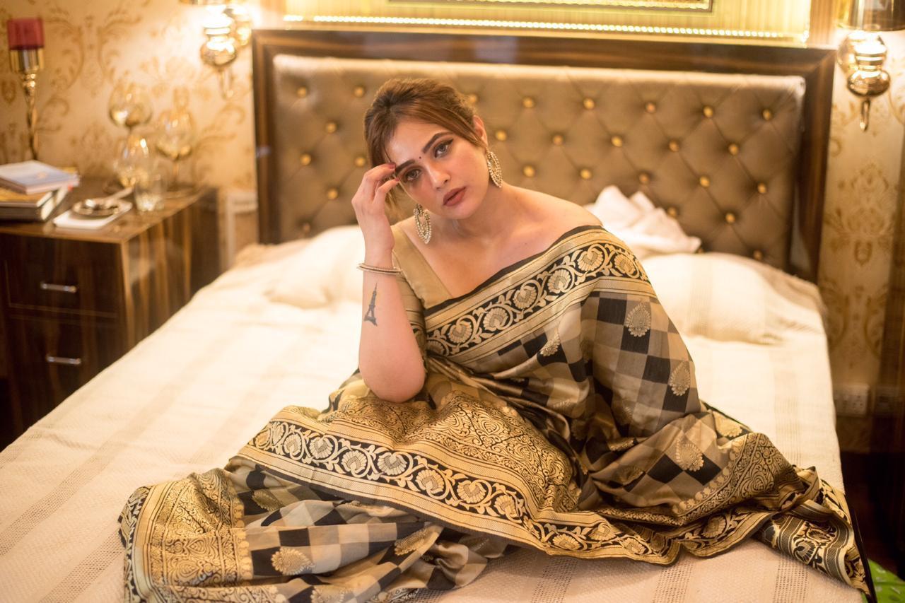 Banarasi Silk Weaving Saree With Fabulous Checks Weaes All Over Contrast Border And Exclusive Pallu