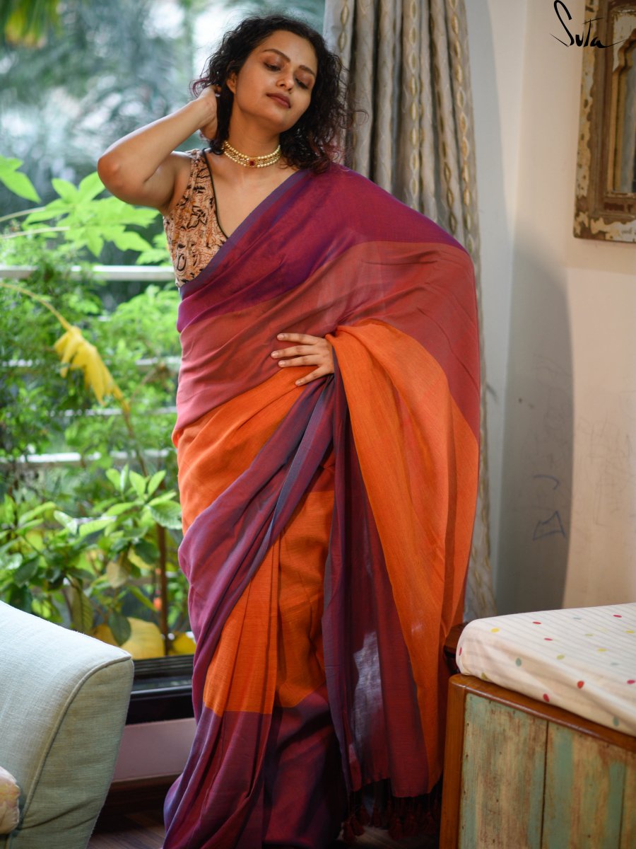 Cotton fabric dates back to some of the most ancient civilisations and it has a strong presence in the modern wardrobe as well. The softness and lightness of cotton combined with its strength and versatility makes it one of the most popular choices, especially for the Indian climate. We took this simple, elegant fabric and combined it with acrylic for that added sheen and voila! We love what we see and the saree falls so beautifully that it feels like second-skin!