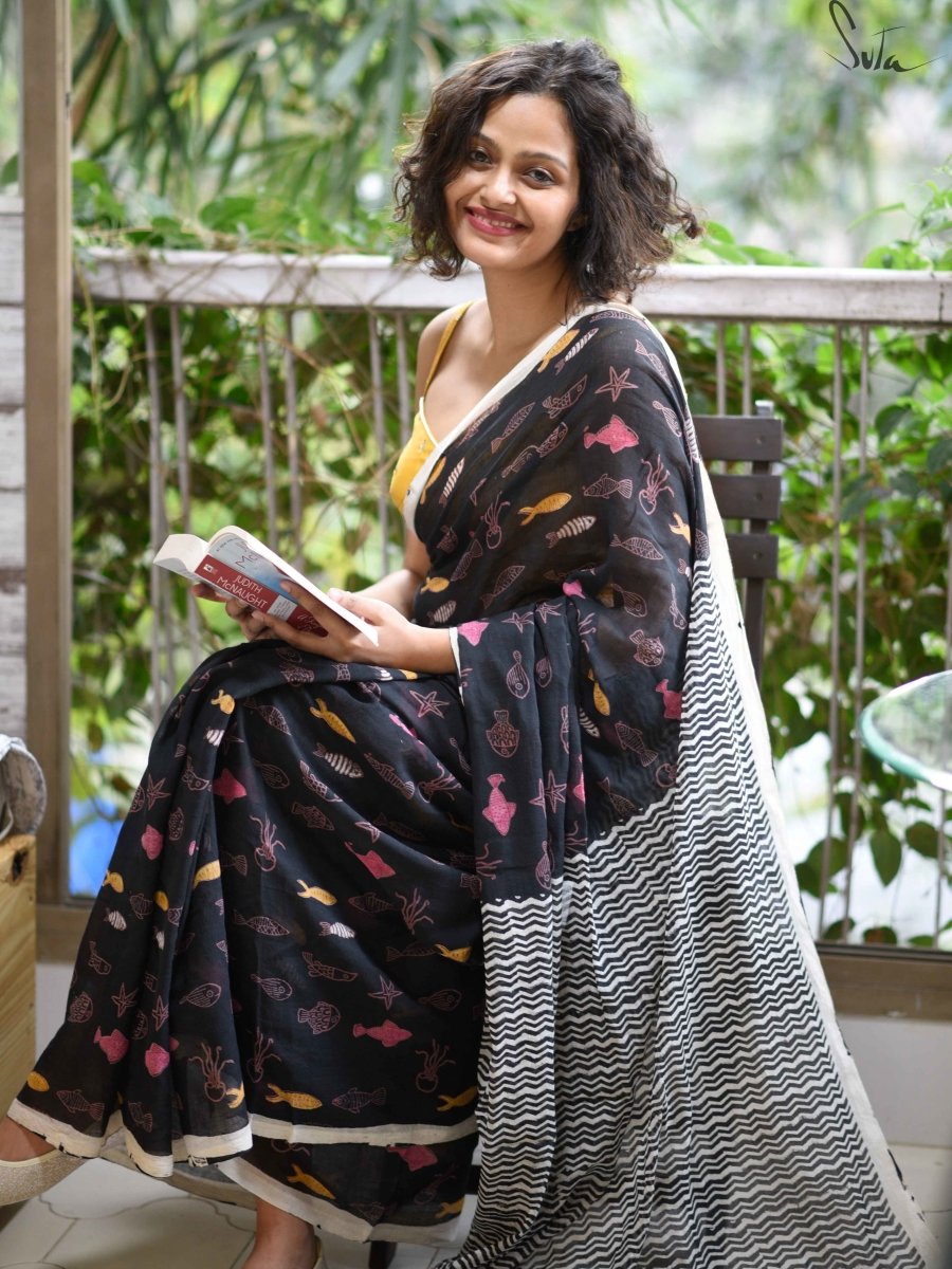 Her various layers were incomprehensible to anyone who just skimmed the surface. She could only be understood by those who dared to dive into the seemingly deadly waters. For those who stood on the edge of the shores and surrendered to the mystery, she was beautiful beyond any logical reasoning. She was just like the Black Sea! This black, pink and mustard made in heaven mul with block-printed design is a combination of all things beautiful!