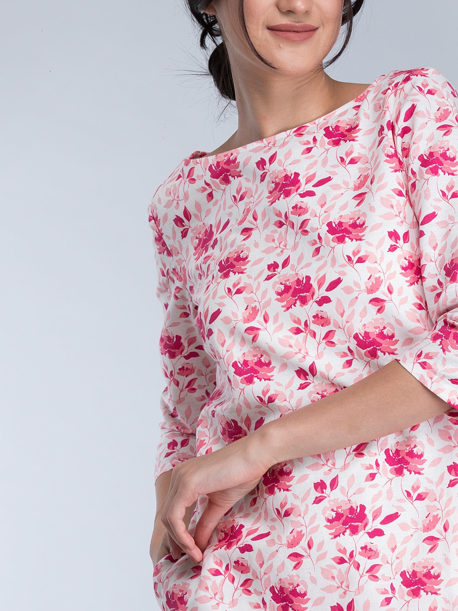 Can't wait fot the virtual party with loved ones? Pick this pretty, pink, shift dress. It has floral print, boat neck with loops inside to fasten your intimates, ¾ sleeves, functional pockets and slits on the hem for easy movement. Made from Cotton, it is breathable, comfortable and natural.