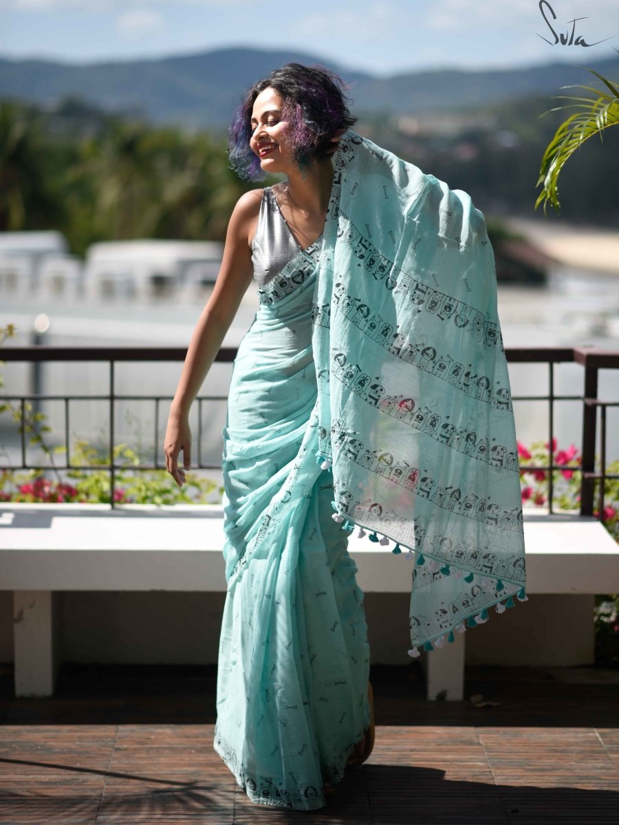 The block-printing on this saree is done on a made-in-heaven mul cotton fabric which is lighter than air and loved by our Suta Queens immensely.