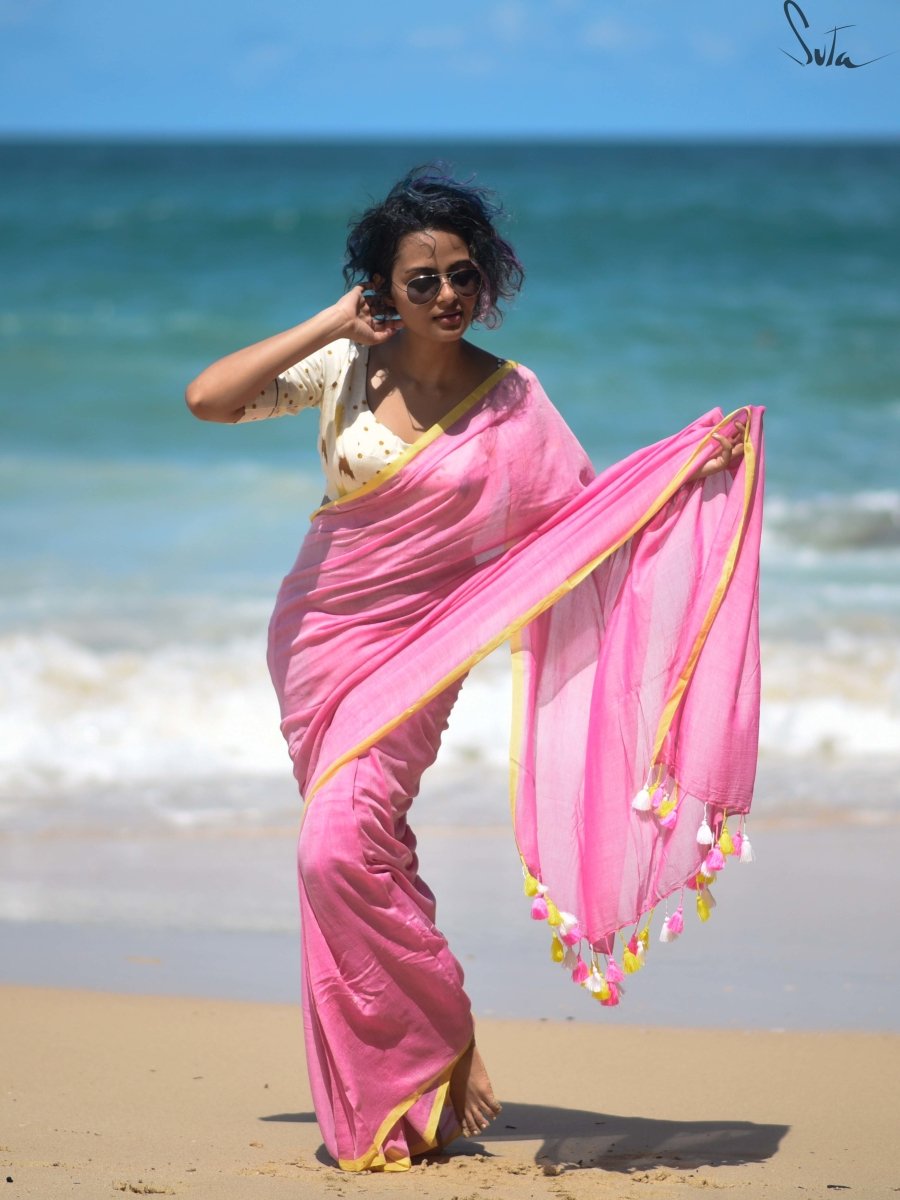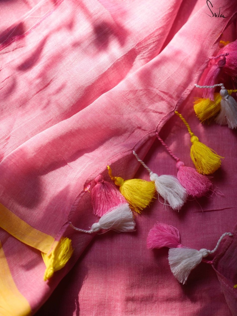 This pink and yellow modal and cotton saree is a saree-lover’s dream come true!