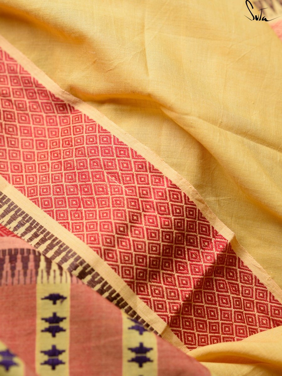 This yellow and red handloom cotton saree is a must have for saree lovers!