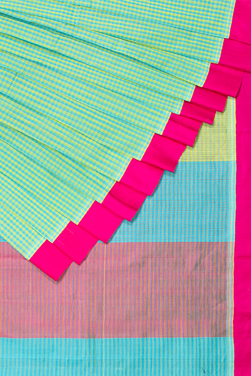 Chitrika Kuppadam 5/5 checks Cotton Handloom Saree Green