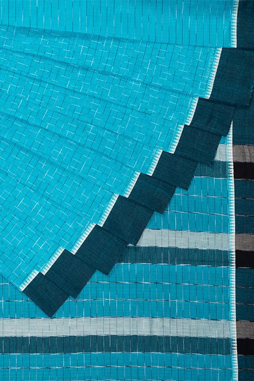 Chitrika Ikat Small Checks Cotton Handloom Saree Blue