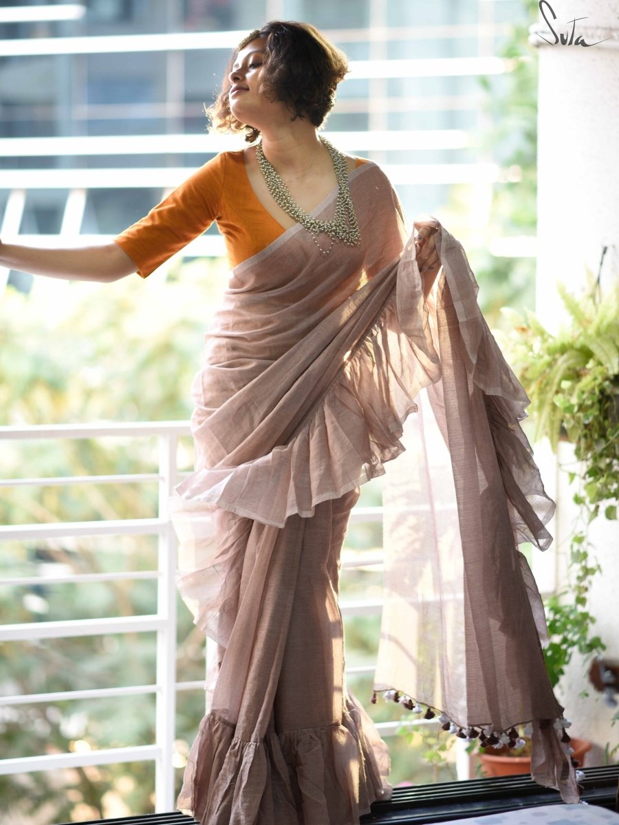Ruffles are the perfect addition to the incredibly soft and light made-in-heaven Mul fabric. These pretty ruffle sarees are an amazing addition to your wardrobe because they offer the perfect mix of elegance and spunk.
