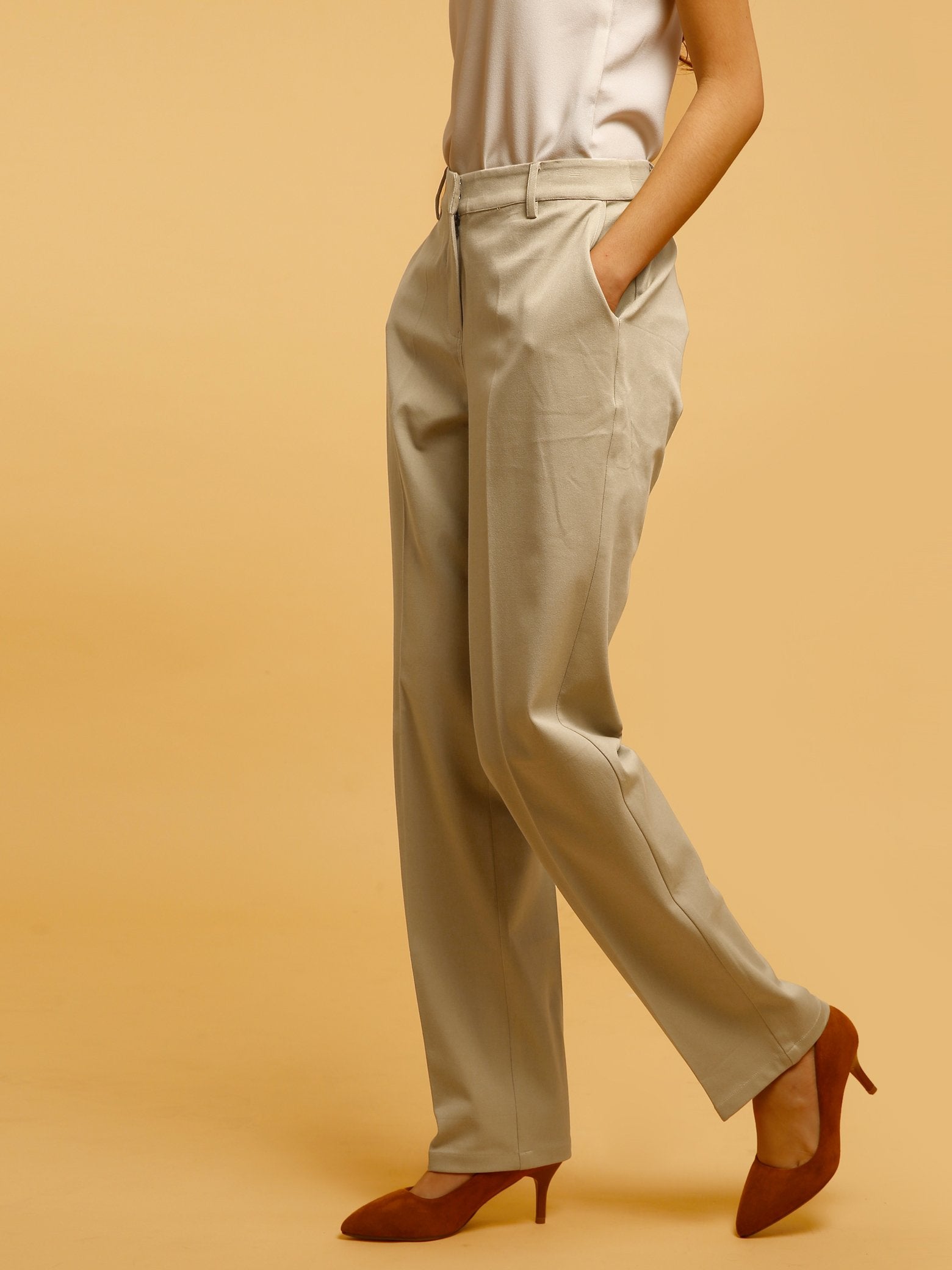 Walk confidently into your workweek in these sandy beige, formal, straight fit pants. These feature delicate creases, hook and zip for closure, loops for belt and functional pockets. Made from Cotton Twill with 4-Way Lycra, these give stretch in four directions, is breathable & anti-wrinkle - making it ultra-comfortable.