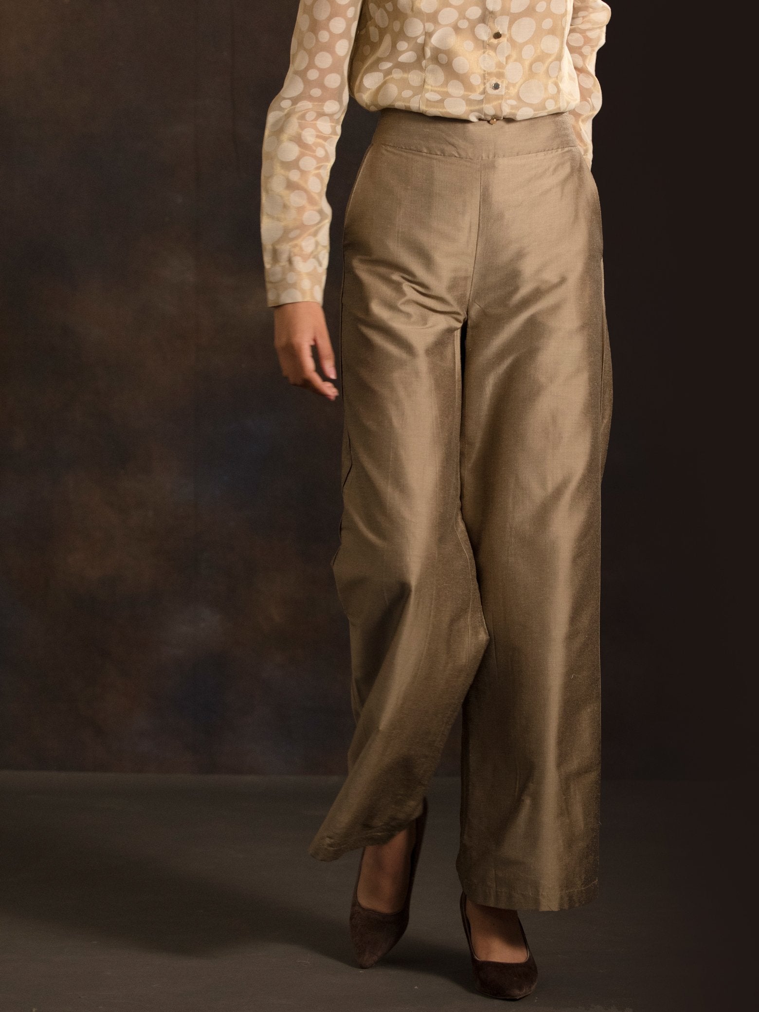 These gold pants have pockets, hook & zip for closure and Cotton-blend lining. Made using Cotton Silk, these are soft, lightweight and luxurious.