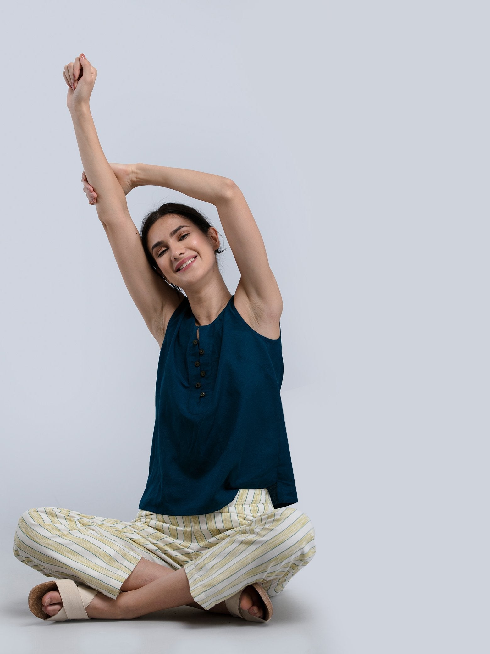 The hem of the pants is intended to fall according to the image on a height of 5'3" to 5'5". Colour may vary slightly according to screen settings and resolution.