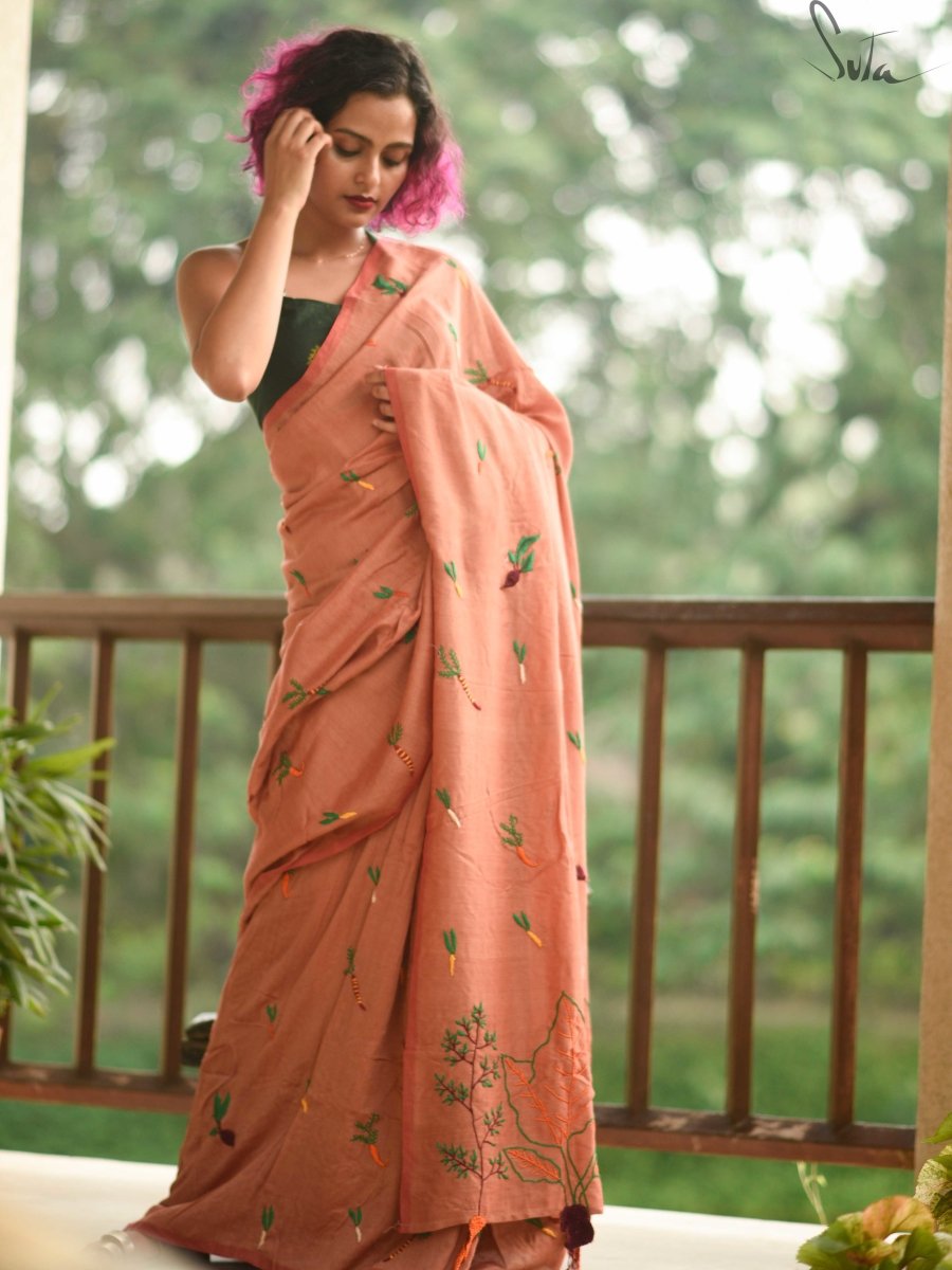 At Suta, we have taken this piece of innovation and made it into our very own fabric by combining modal yarn and made-in-heaven mul yarn together to create a very special product. The coming together of a new-age yarn and the most loved mul yarn is truly a magical thing and the outcome is spectacular. Good clothes are meant to not just make you look good but also make you feel good from inside and this eco-friendly twist to your favourite mul saree will achieve exactly that!