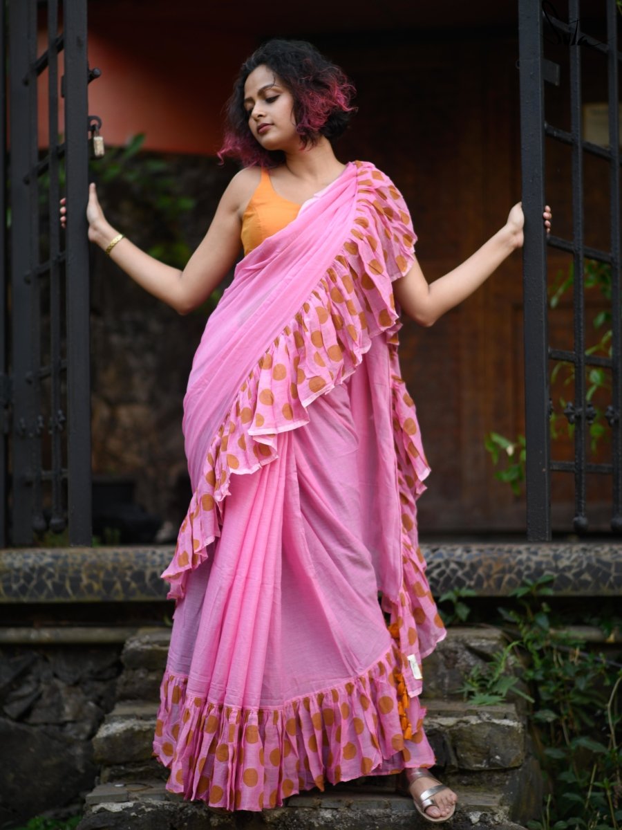 Ruffles are the perfect addition to the incredibly soft and light made-in-heaven Mul fabric. These pretty ruffle sarees are an amazing addition to your wardrobe because they offer the perfect mix of elegance and spunk.