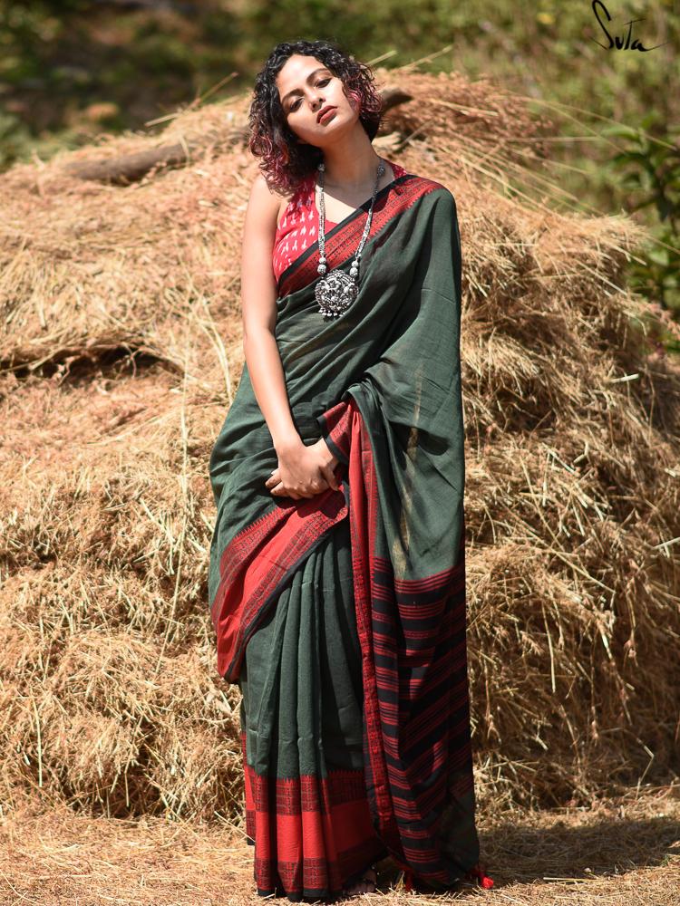 The handloom cotton is a type of fabric that is woven using hand operated looms. Two sets of interlacing yarns, the warp (length) and weft (width), are woven on a mechanised loom operated by weavers. These looms do not use electricity. Human handling lends the fabrics a unique feel and renders the fabrics more value. The resultant fabric is softer, more durable and much more comfortable than machine-made fabrics. Handloom cotton is more breathable and thus feels lighter in summers and provides more insulation in winters. The dyeing process also becomes easier for handloom cotton as the colour penetration is substantially more. Hues are absorbed better thus look resplendent on handloom cotton.