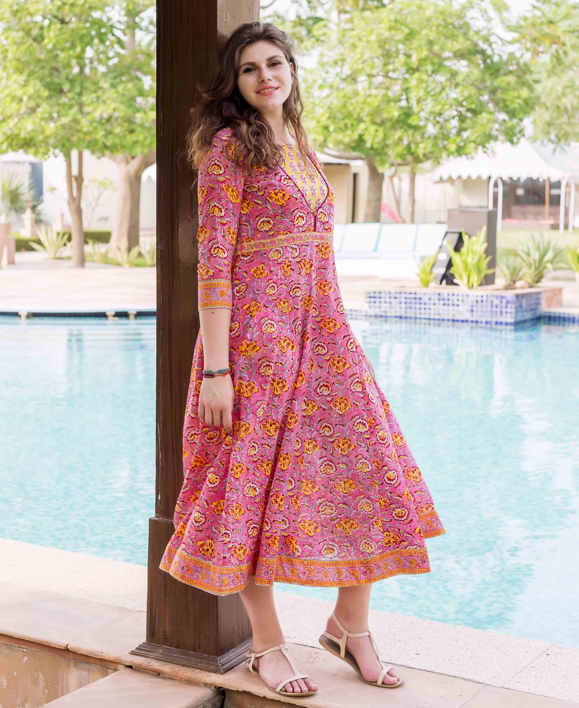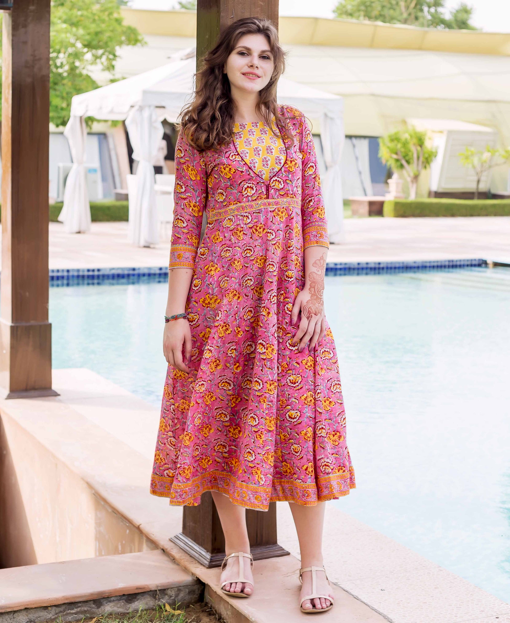 - Sleeves: ¾ Sleeves with Border Printed Trim