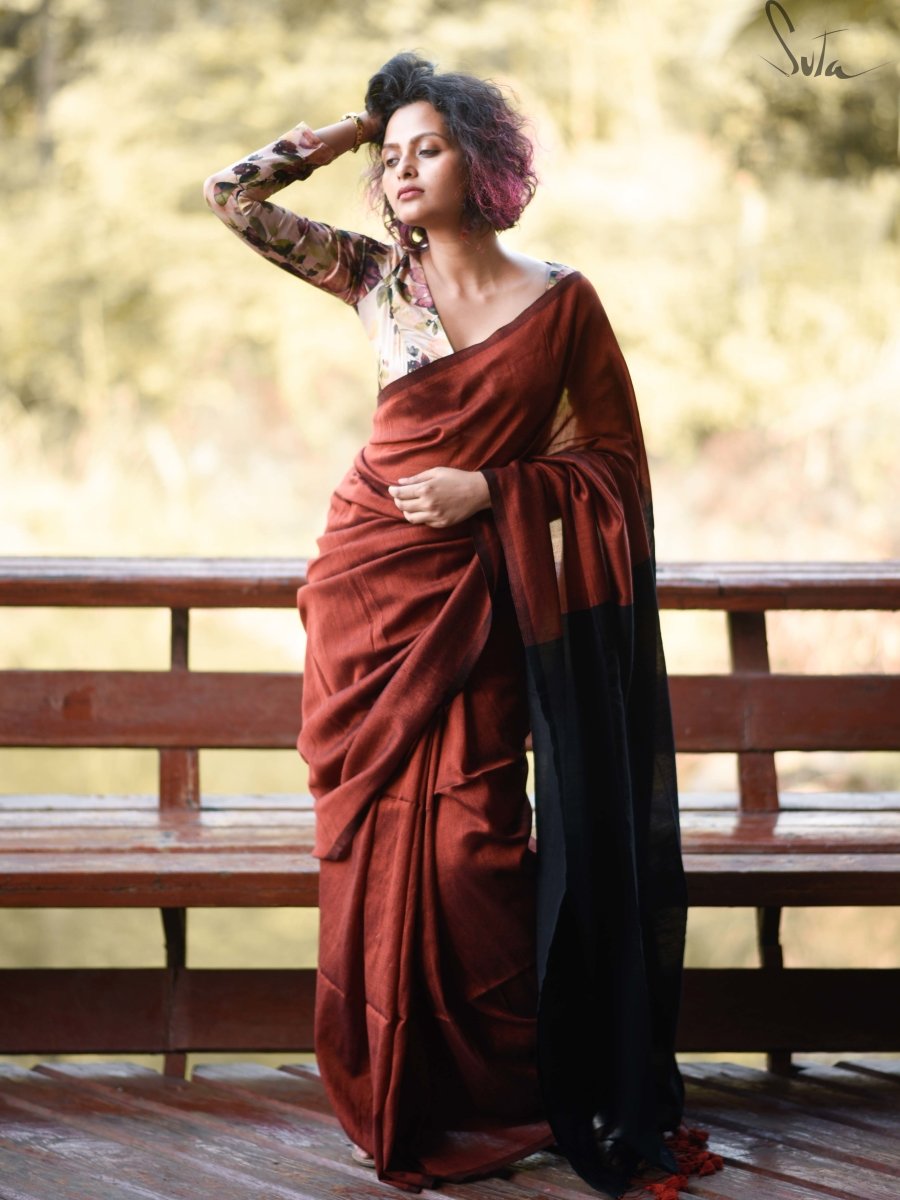 This rust and black saree is dreamy! This one belongs in the spotlight and is ready to get the town talking!