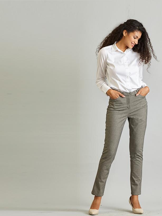 The Essential Comfort Trousers in Dark Grey Melange are crafted with extra stretch and wrinkle resistant cotton. It has functional details such as side pockets, stretchable waist and adjustable length. These look like formal trousers yet feel like a yoga pant, making it an essential piece in your work closet.