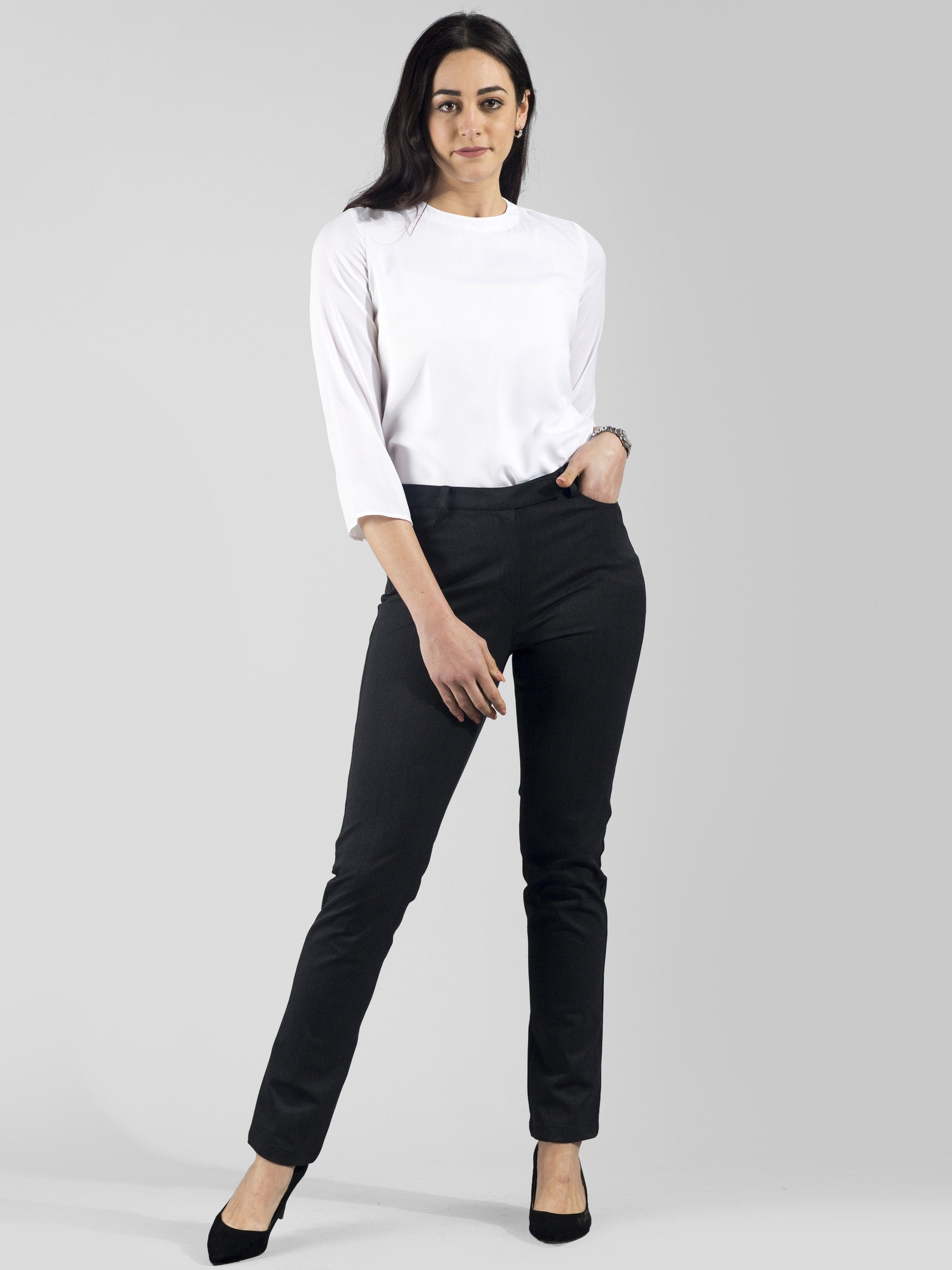 We are introducing the Essential Comfort Trousers in an all new colour - Graphite Grey. This pair of trousers has been crafted in stretchable, anti-wrinkle and breathable fabric which provides you with comfort all-day long. It is your ideal pick every day. It comes with relevant functional details such as pockets at the back for your essentials. This pair of trousers can be worn all day comfortably and pairs with almost everything.