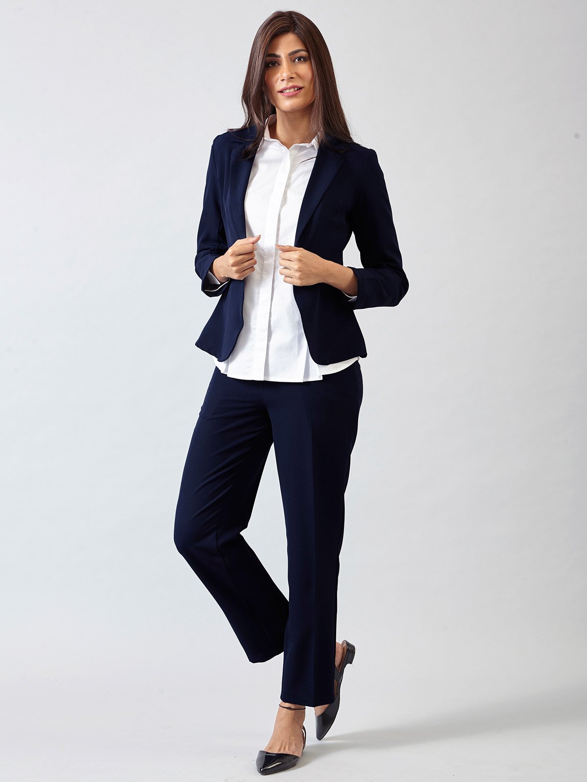 Essential Work Trousers - a boardroom staple curated in a stretchable anti-wrinkle fabric is our next addition to your work wardrobe. It has pockets on both sides and a hidden zip closure for ease of wear. These trousers can be paired with our Navy Essential Jacket to complete the business suit.