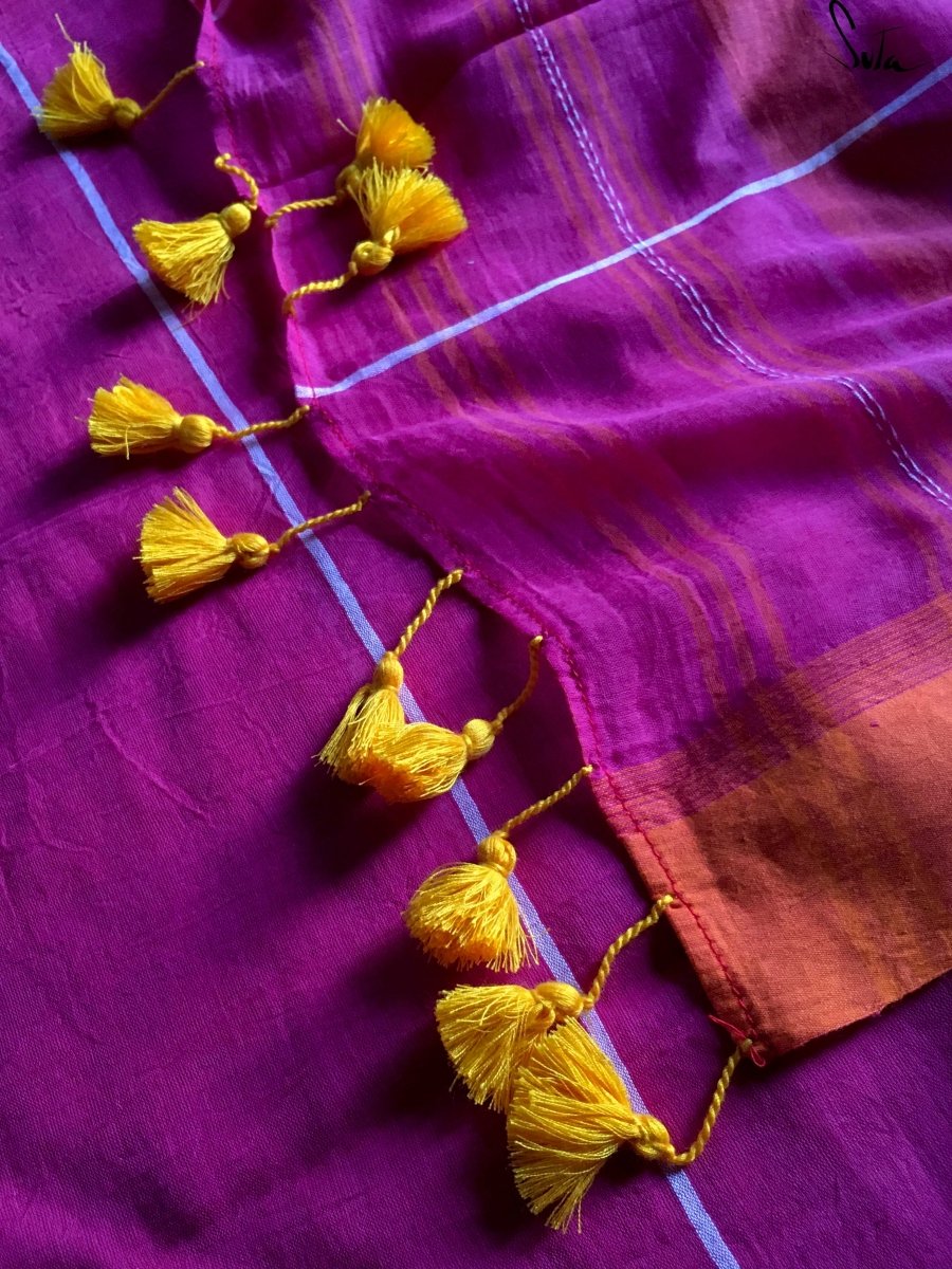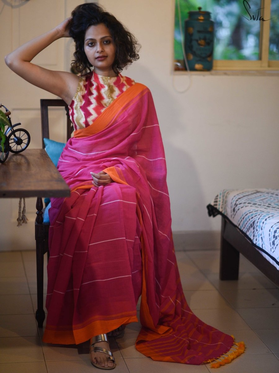 This pink, orange and white handloom cotton saree is a combination of elegance and class!
