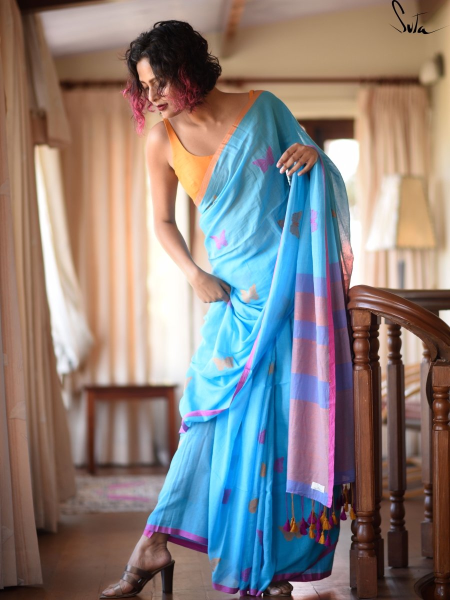 This collection is an exploration of some of our favourite animals and the traits that we humans share with them. The mystical connection that we share with these animals is expressed through Origami inspired shapes that come alive on the soft fabric. The intricate weaving is done by master artisans in West Bengal and a single saree takes approximately 1.5 weeks to be hand-spun and hand-woven. In fact, the entire family of a weaver works to create every product and are involved in various steps of weaving. The magical collection is a result of our designer staying with the artisans for over 3 weeks to understand their world and create this contemporary take on handloom sarees