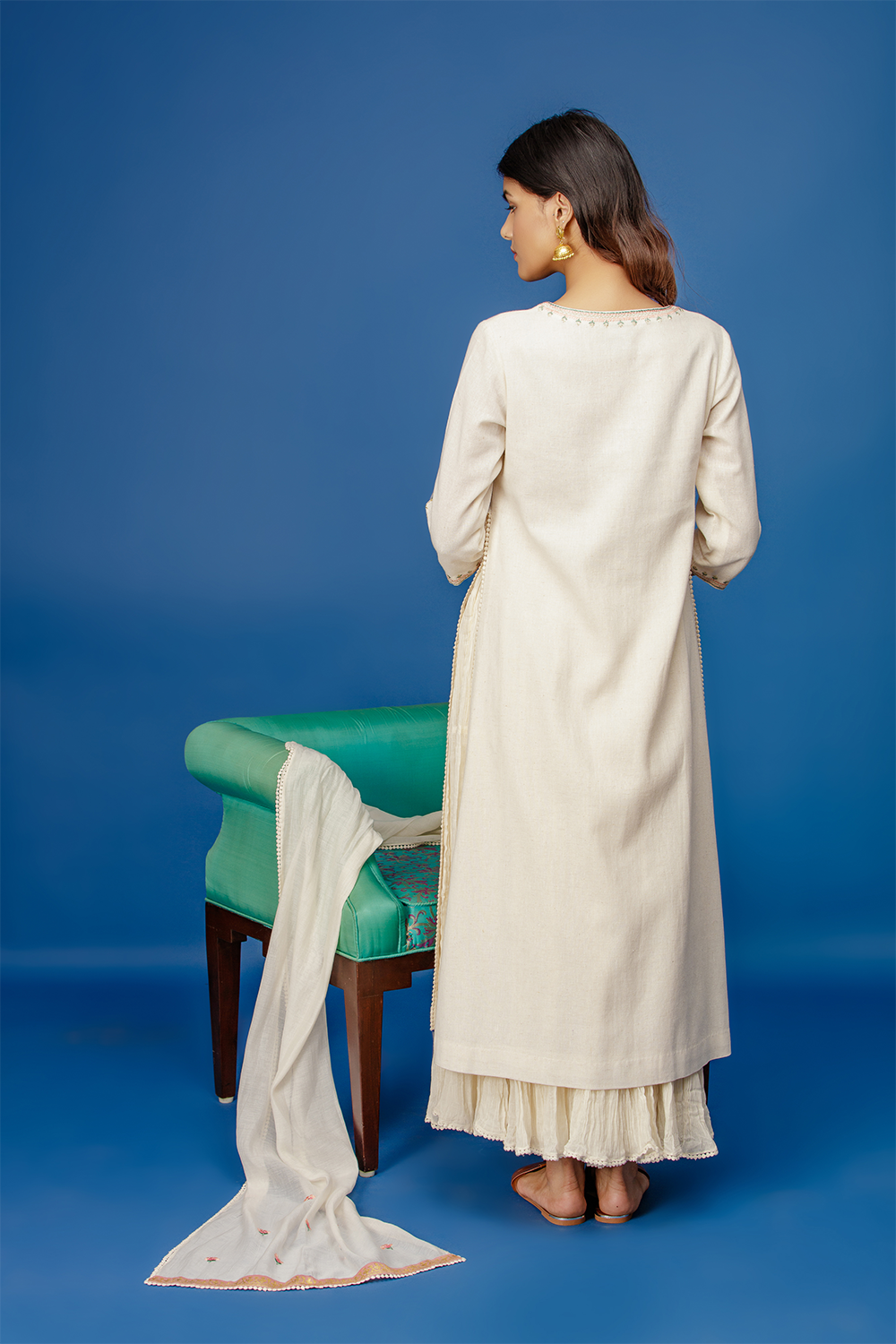 Floral Jaal Kurta With Crinkle Sharara & Dupatta. Ivory