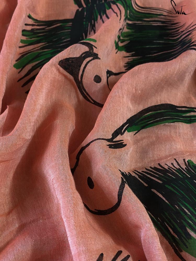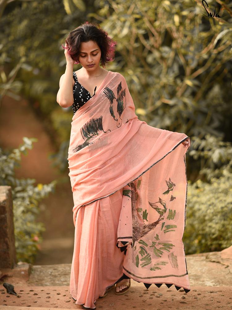 This beautiful saree brings together art and fashion. The design is screen-printed on the gorgeous fabric of made-in-heaven mul and modal blend.