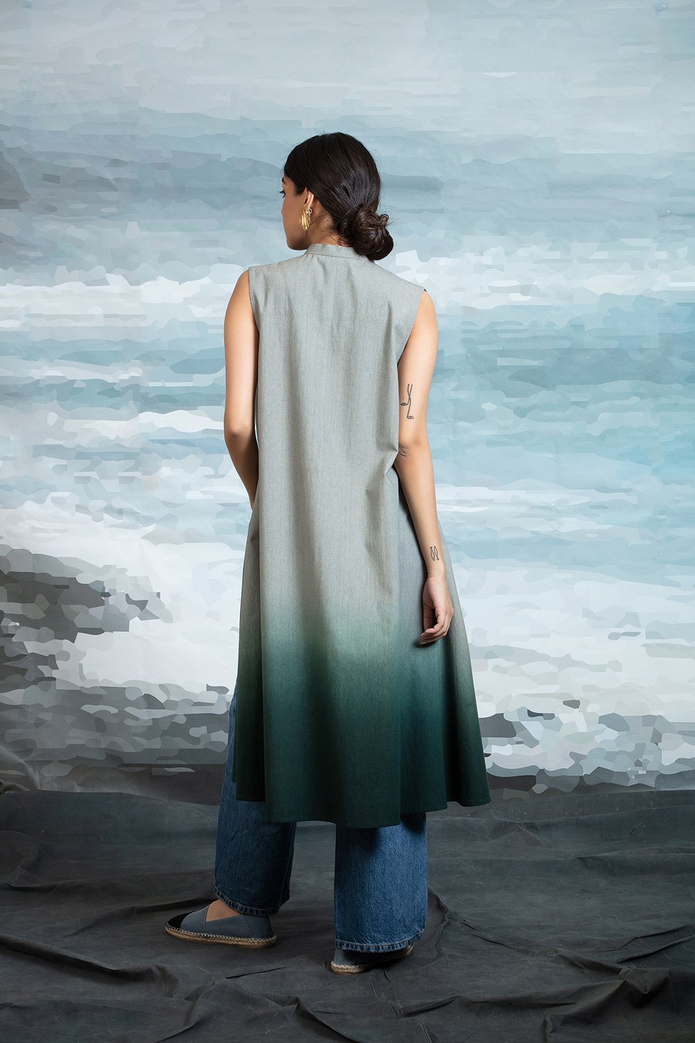Front Open Cape In Shaded Teal Green.