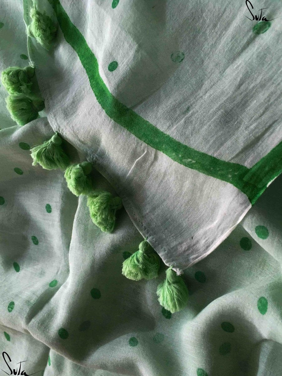 This green saree in made-in-heaven mul cotton with block printing is a real treat!