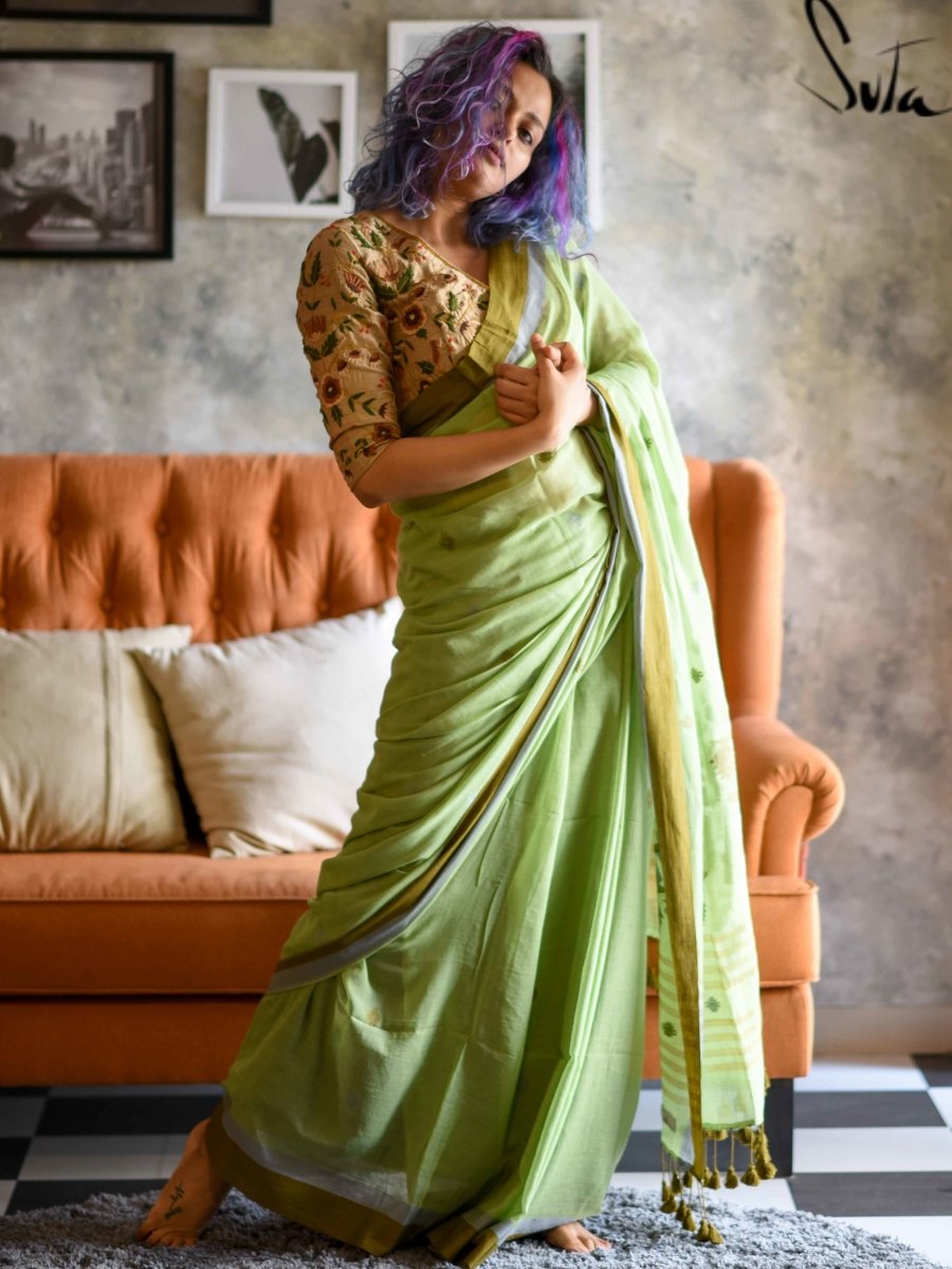 The handloom cotton is a type of fabric that is woven using hand operated looms. Two sets of interlacing yarns, the warp (length) and weft (width), are woven on a mechanised loom operated by weavers. These looms do not use electricity. Human handling lends the fabrics a unique feel and renders the fabrics more value. The resultant fabric is softer, more durable and much more comfortable than machine-made fabrics. Handlooom cotton is more breathable and thus feels lighter in summers and provides more insulation in winters. The dyeing process also becomes easier for handloom cotton as the colour penetration is substantially more. Hues are absorbed better thus look resplendent on handloom cotton. The art of hand weaving is labour intensive and takes a longer time. But, the beauty it adds to the fabric is priceless. Choosing handloom cotton supports the rich weaving heritage of India and lets the weavers carry on the precious art-form to the future generations as well..