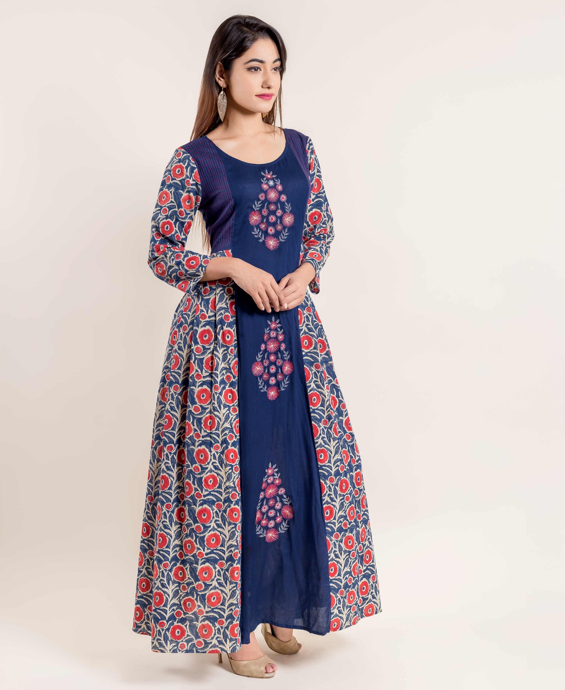 Hand Block Print Embroidered Indo Western Dress
