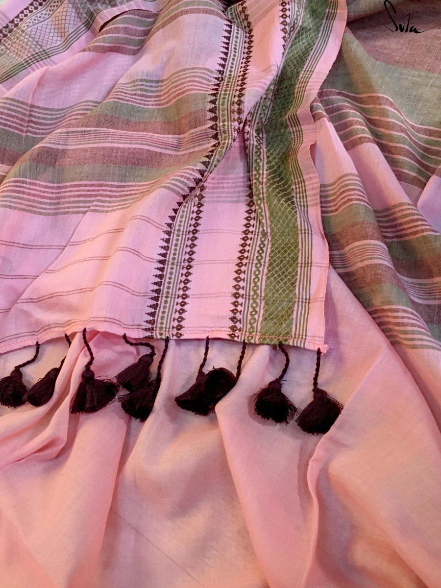 The handloom cotton is a type of fabric that is woven using hand operated looms. Two sets of interlacing yarns, the warp (length) and weft (width), are woven on a mechanised loom operated by weavers. These looms do not use electricity. Human handling lends the fabrics a unique feel and renders the fabrics more value. The resultant fabric is softer, more durable and much more comfortable than machine-made fabrics. Handloom cotton is more breathable and thus feels lighter in summers and provides more insulation in winters. The dyeing process also becomes easier for handloom cotton as the colour penetration is substantially more. Hues are absorbed better thus look resplendent on handloom cotton.