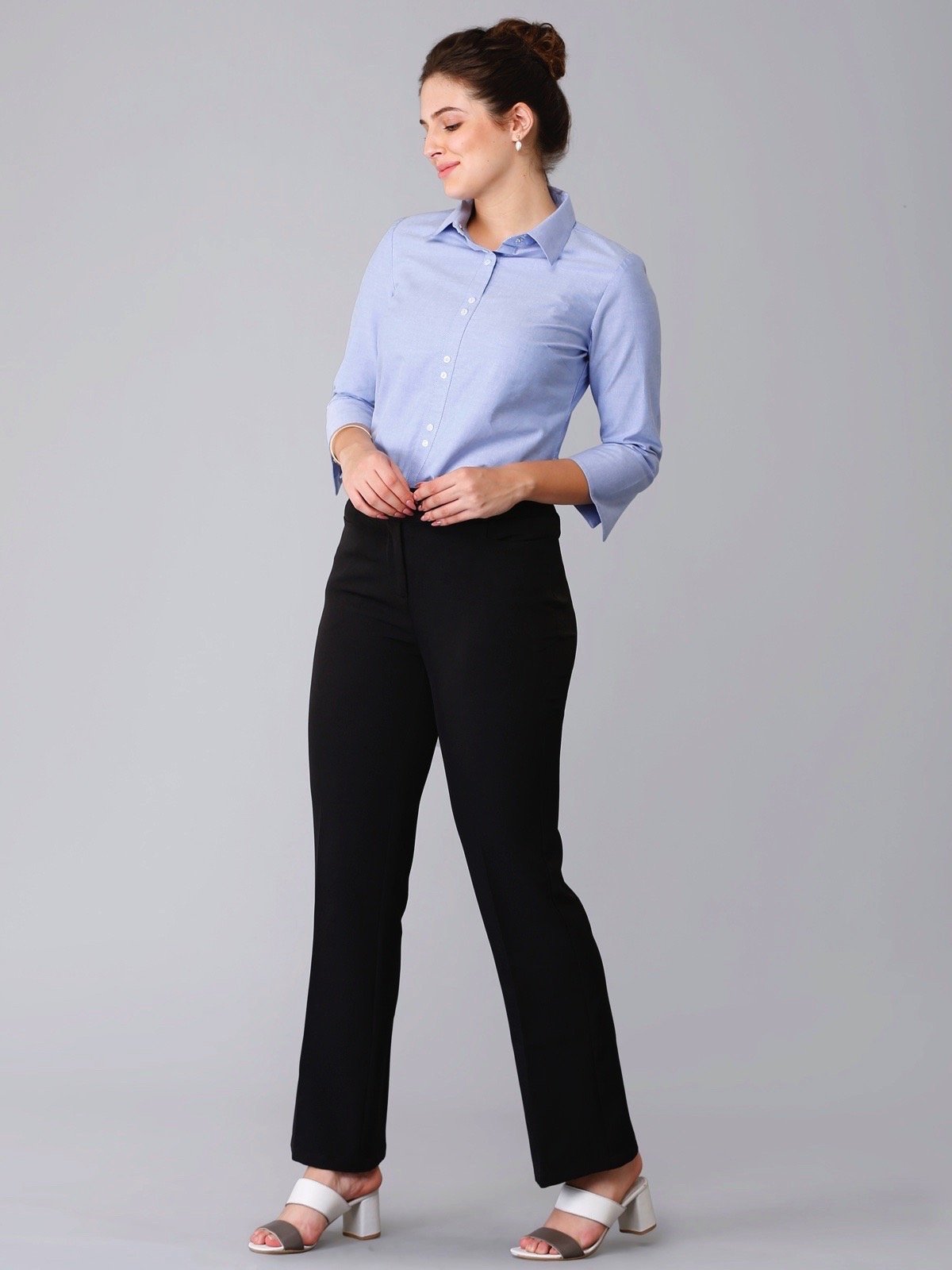 Nothing fits like these straight fit trousers. These are high-waist and feature a loop for belt and hook with zip fly. Our focus is on comfort, hence these trousers also feature pockets on the side. Created using Polyester Marina, these trousers are immensely smooth to touch and feels soft on your skin. These trousers are also anti-wrinkle and anti-pilling, thus ensuring easy maintenance. Wear these with your favourite tops or shirts for a power look.