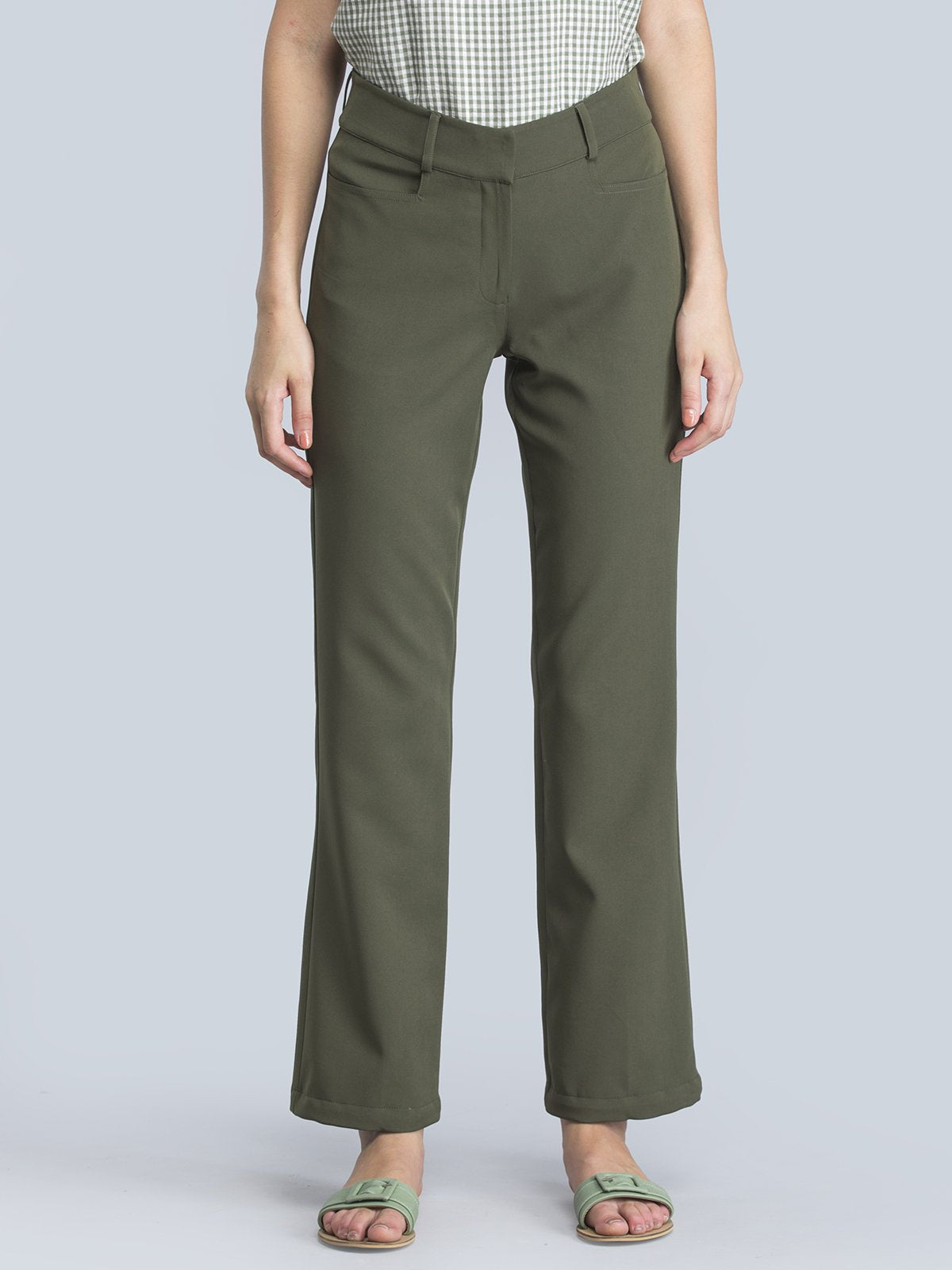 Nothing fits like trousers! These olive, high-waisted trousers feature a loop for belt and hook with zip fly and functional pockets to hold your phone. Created using Polyester, these are immensely smooth to touch, soft, stretchable, anti-wrinkle and anti-pill.