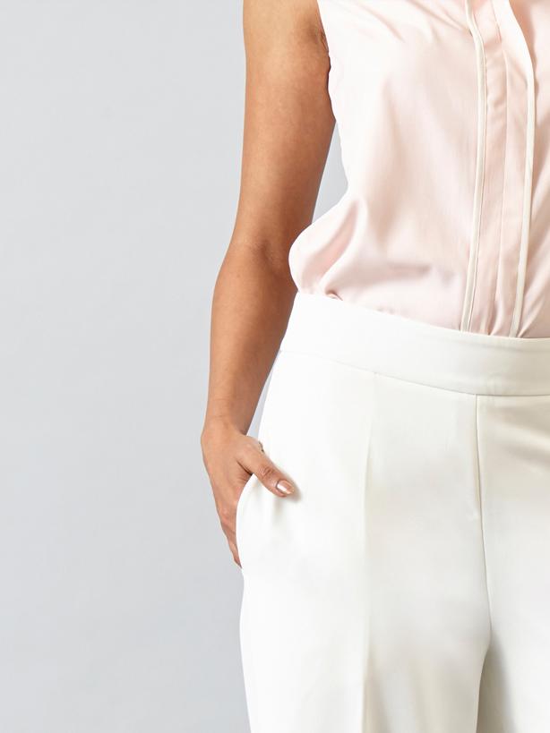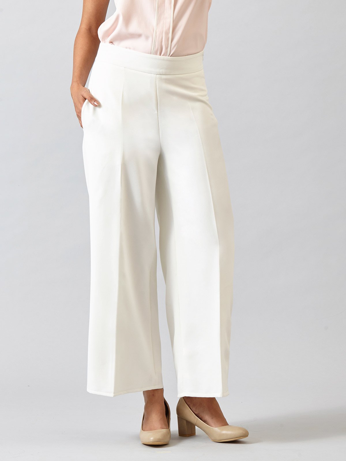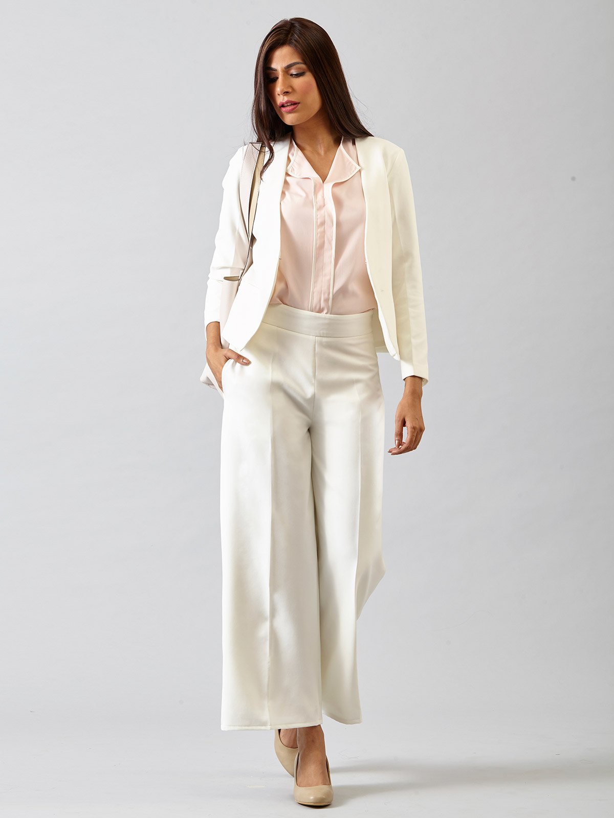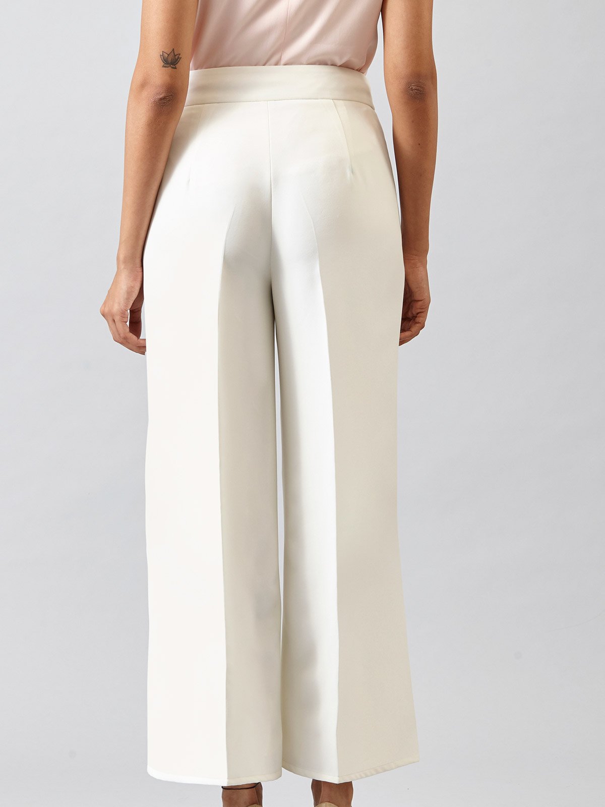 Our take on the classic formal pants - High Waist Wide Leg Trousers is a boardroom essential. This pair of trousers is lined underneath and has a hidden side zip. In a breathable fabric, this has a stretchable texture for easy wear and the high waist accentuates your look. It also includes pockets on both sides for you to carry your essentials. These trousers can be paired with our Off White Classic Formal Jacket to complete the business suit.