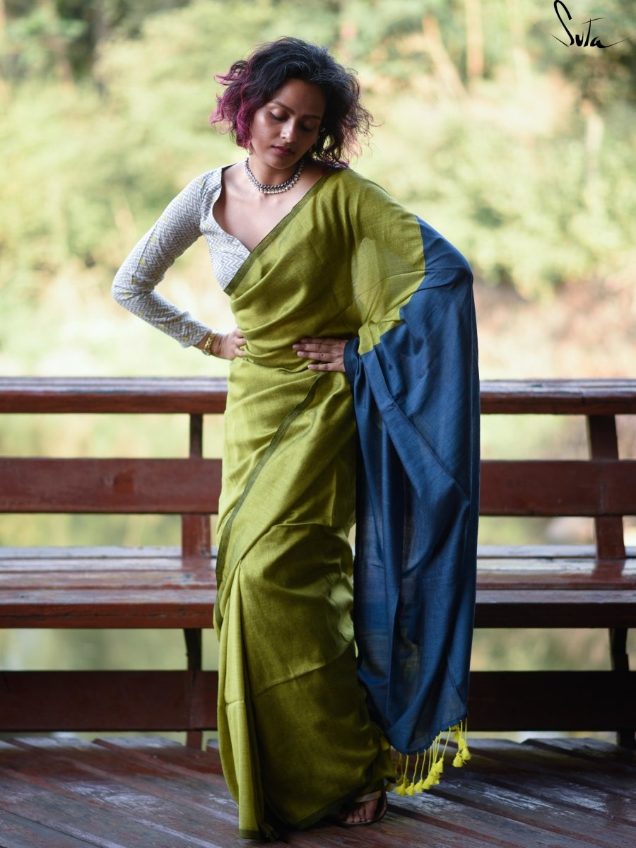 Cotton fabric dates back to some of the most ancient civilisations and it has a strong presence in the modern wardrobe as well. The softness and lightness of cotton combined with its strength and versatility makes it one of the most popular choices, especially for the Indian climate. We took this simple, elegant fabric and combined it with acrylic for that added sheen and voila! We love what we see and the saree falls so beautifully that it feels like second-skin!
