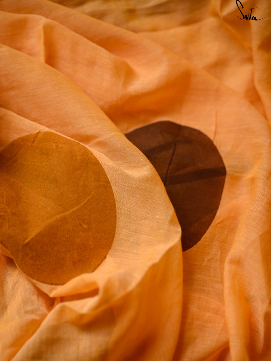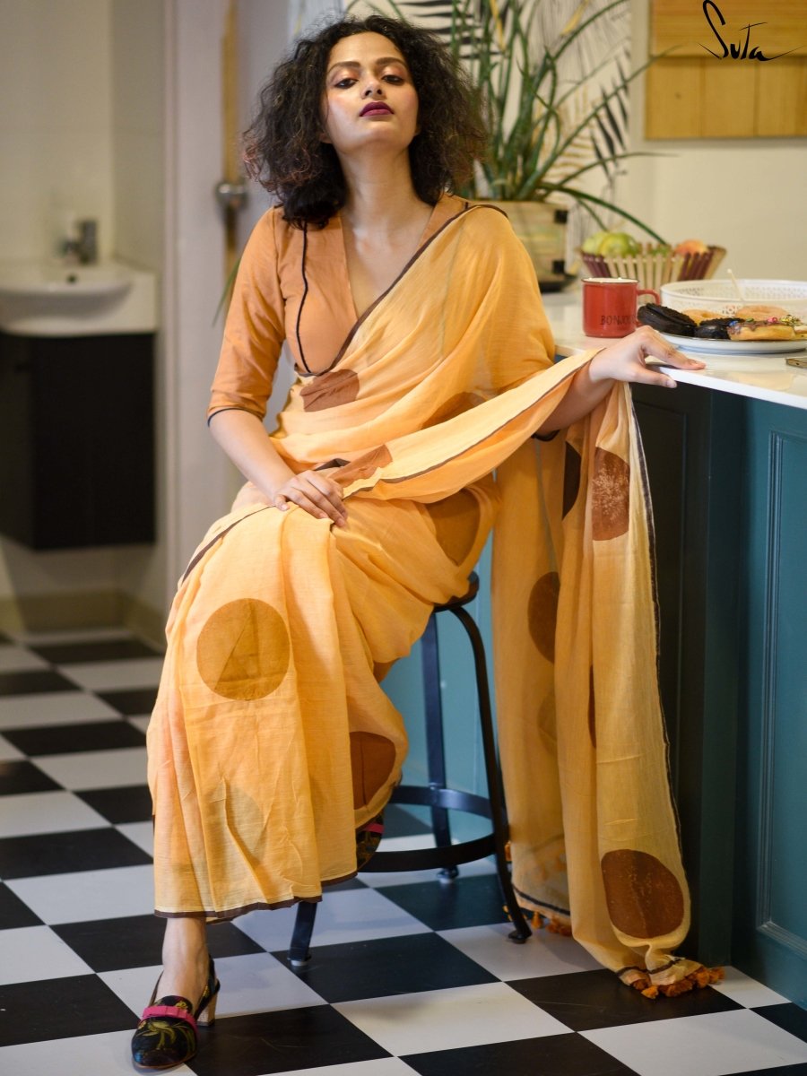 This mustard and brown handblocked made-in-heaven mul saree is a must-have!