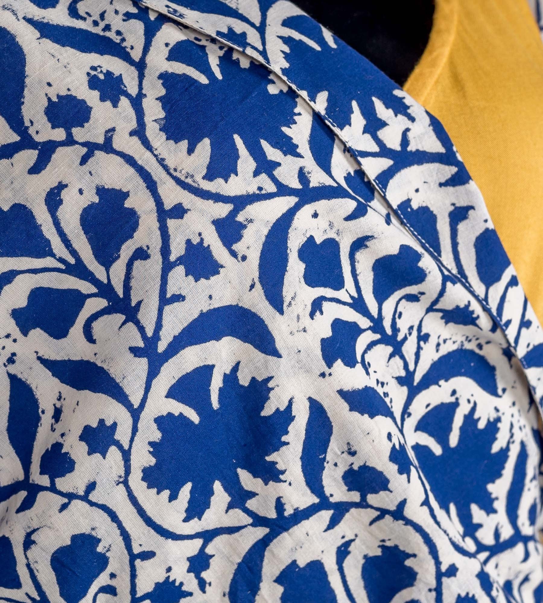 Indigo and Mustard Hand Block Printed Wrap Dress