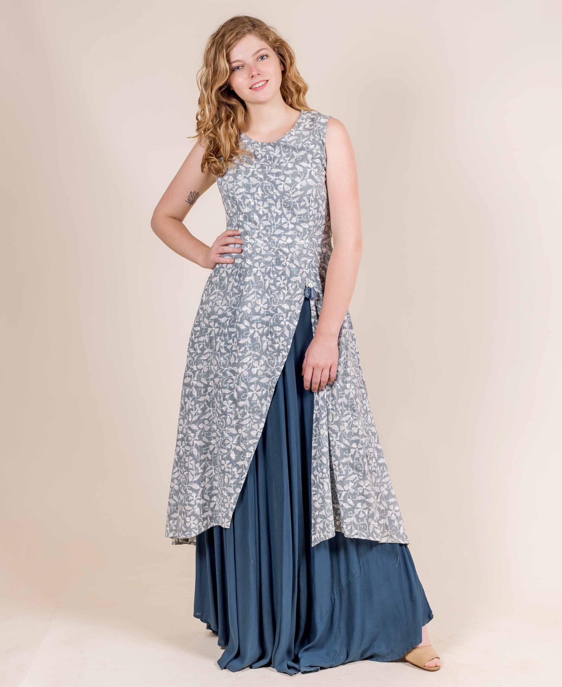 Indigo Blue and White Hand Block Printed Indo Western Dress