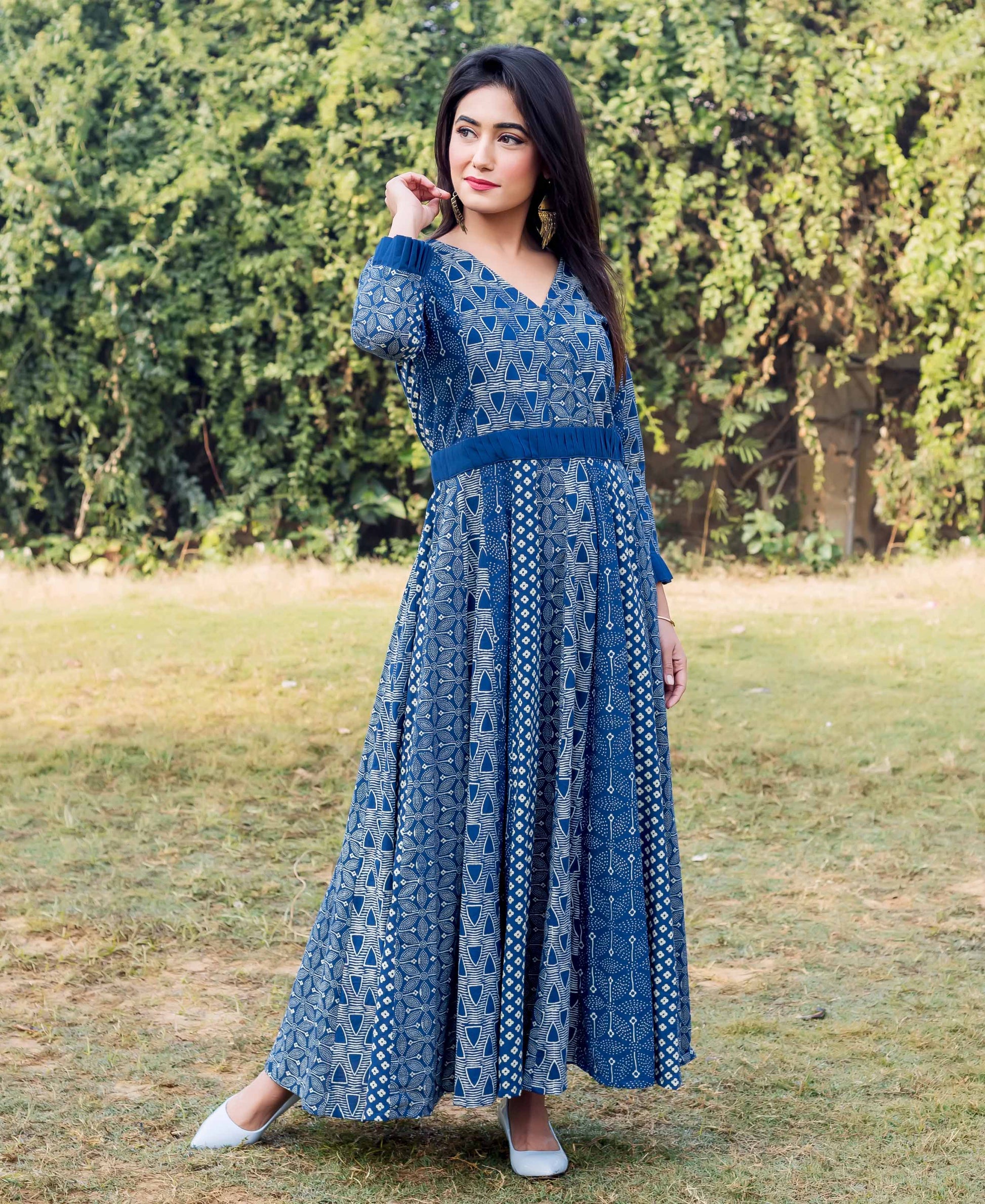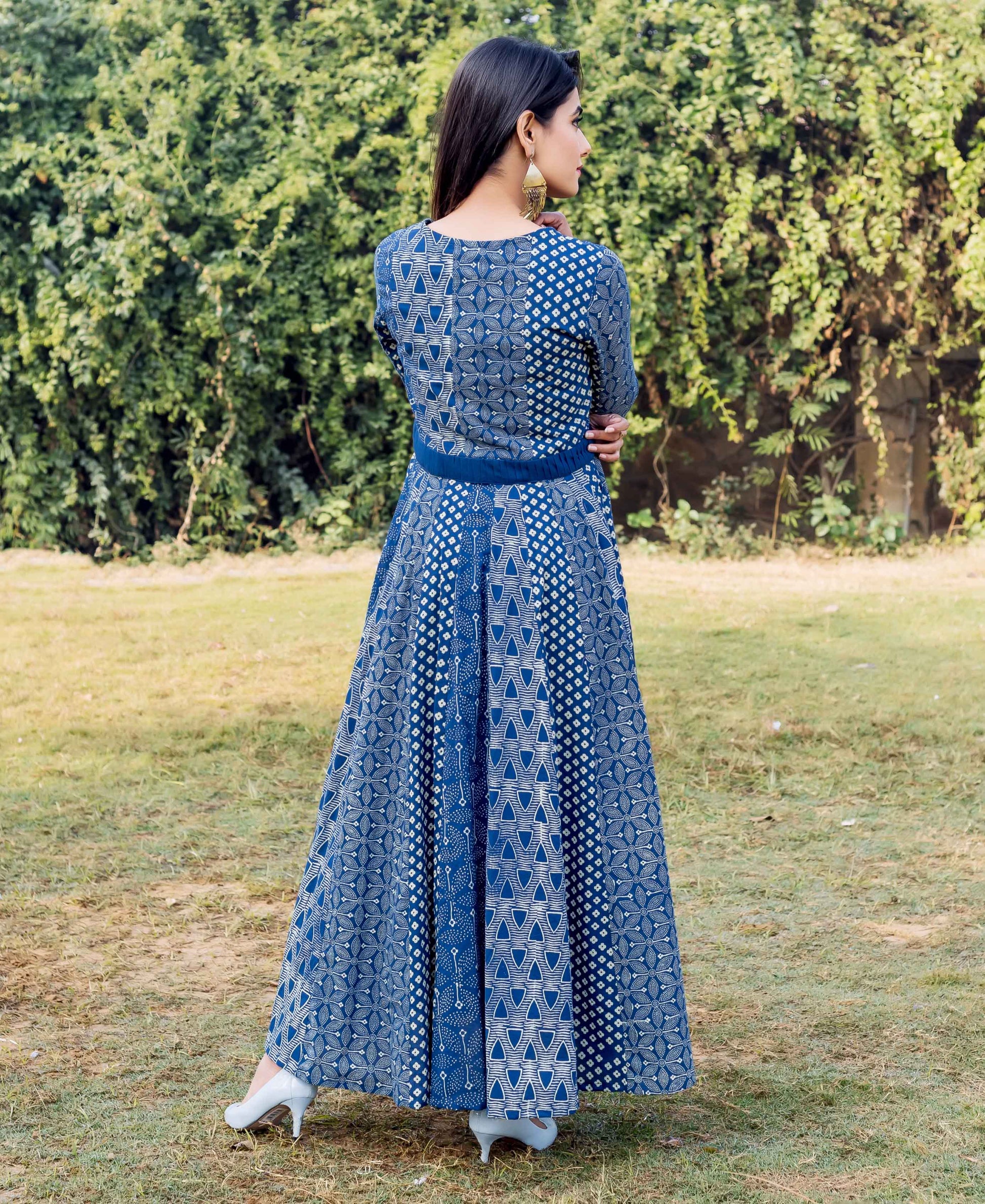 Indigo Multi Hand Block Printed Anarkali Dress