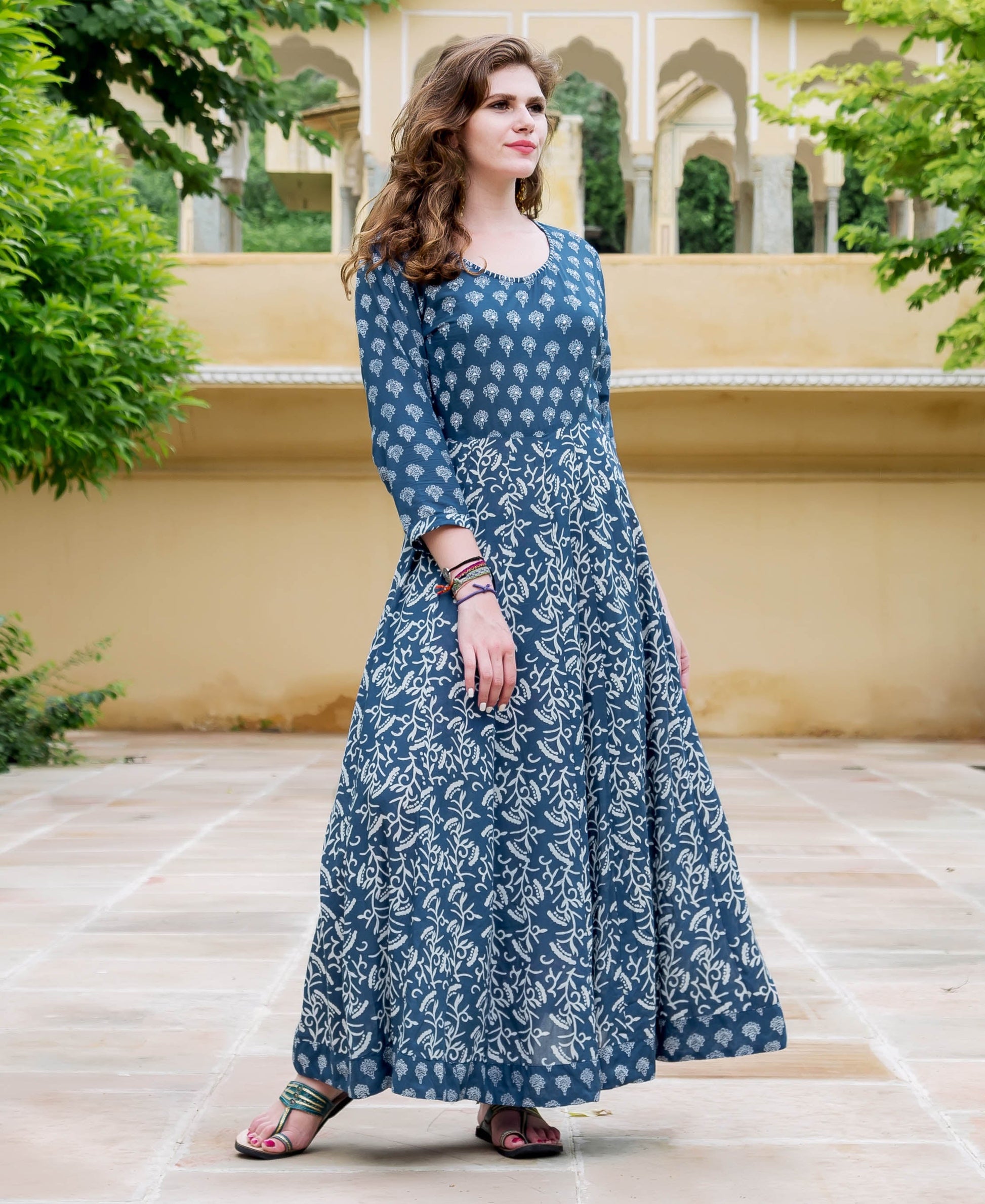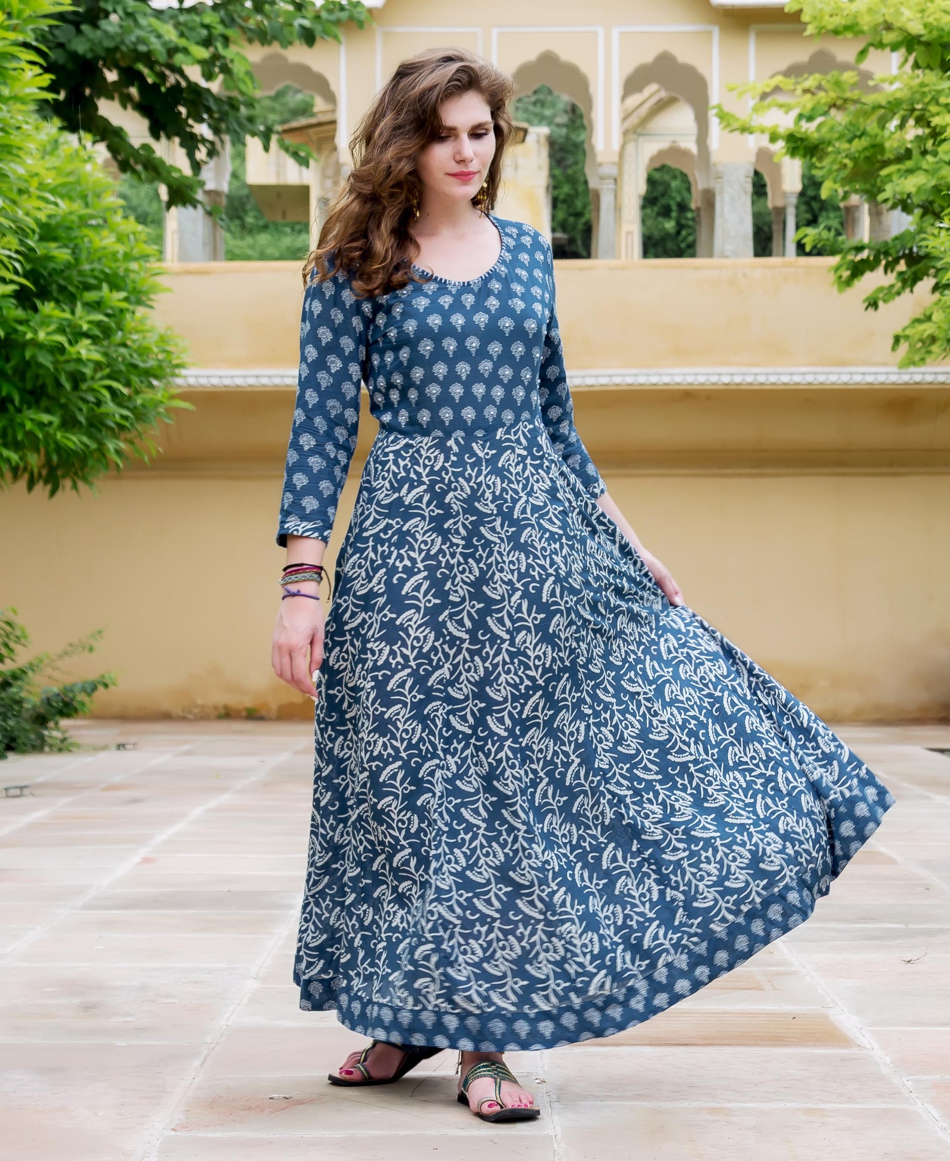 - Block Printed Flared Dress