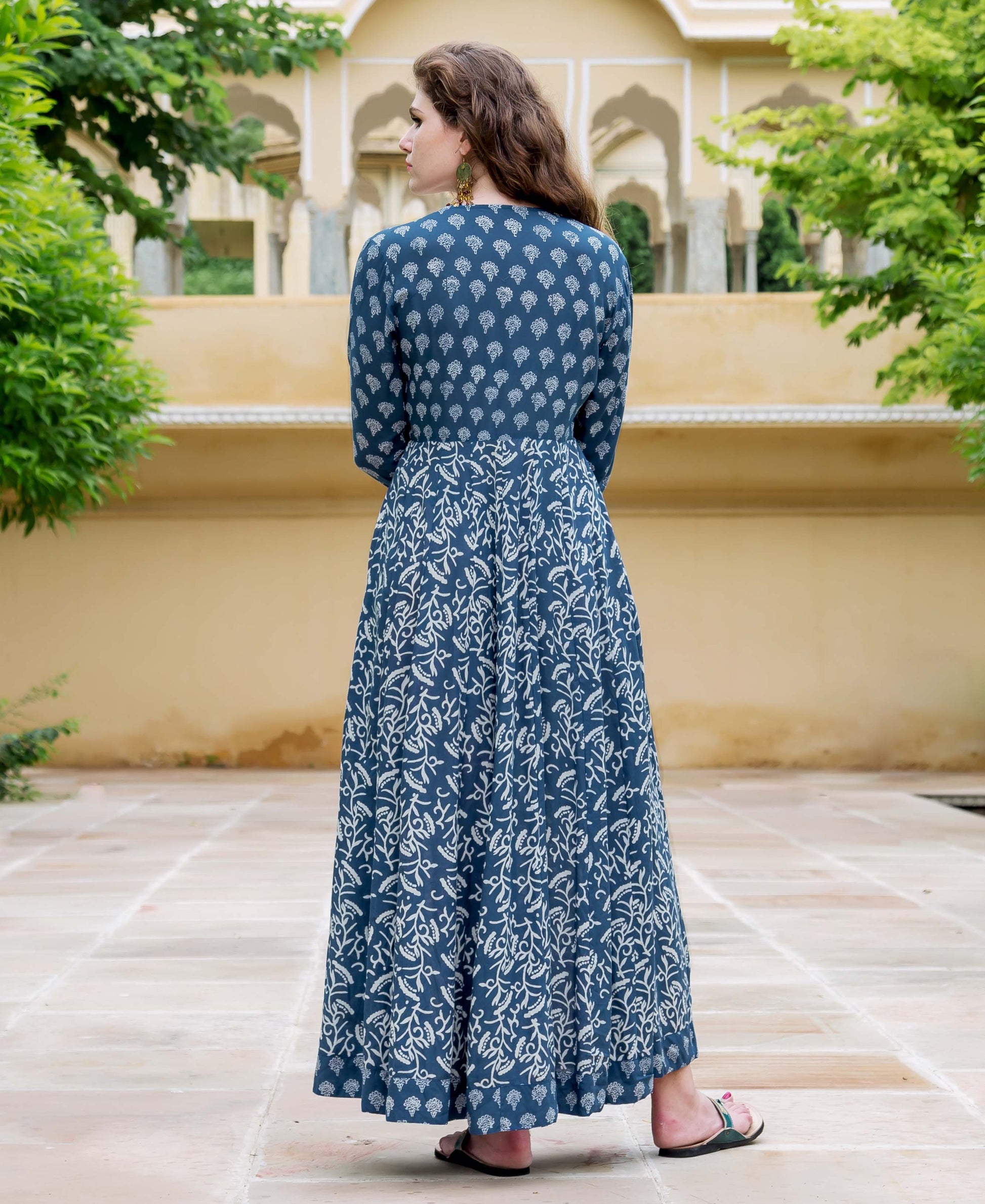 Indigo Printed Flared Dress
