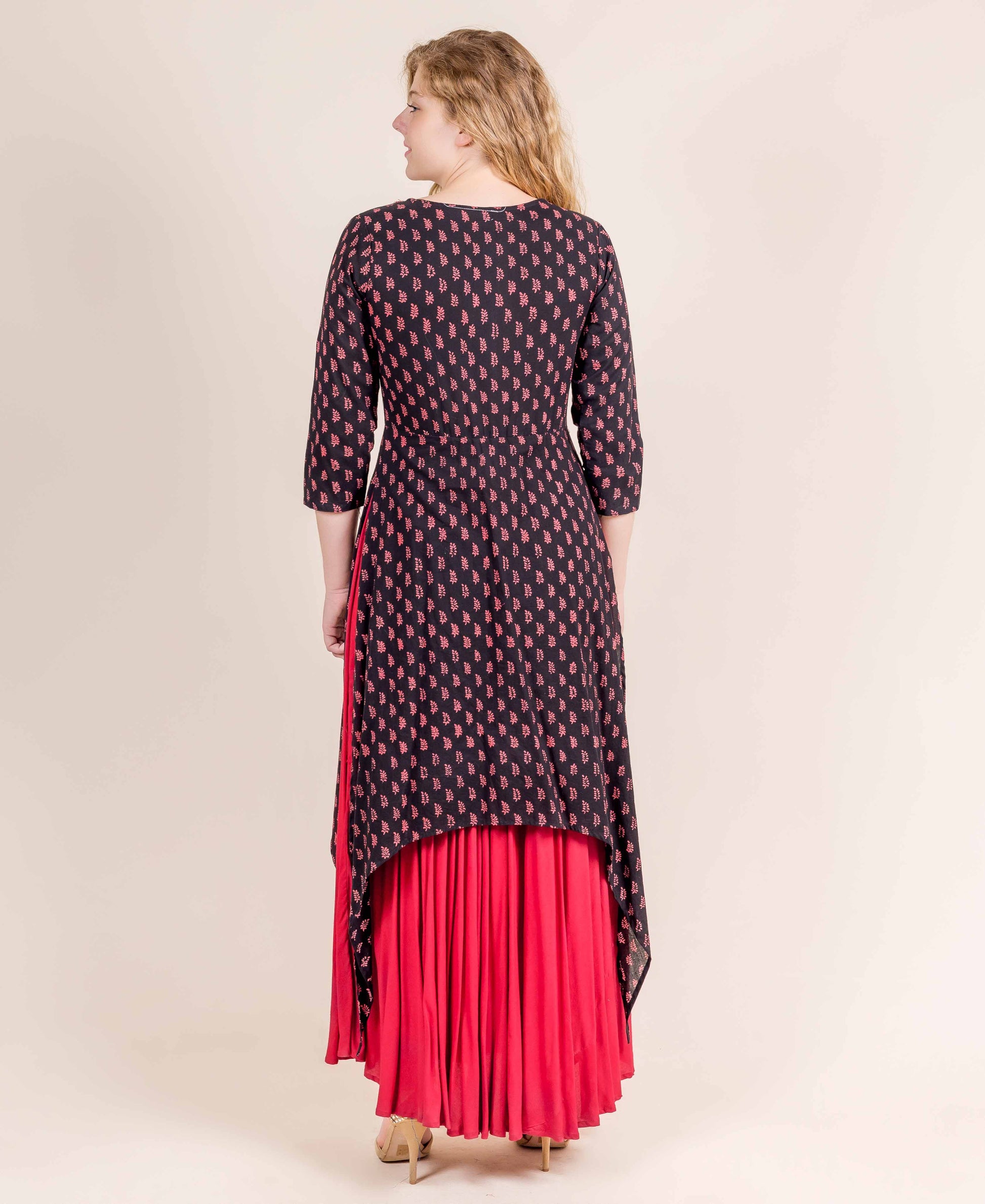 Step into a refreshing aura of cutting edge kurta dress accompanied with stylish Neck Tassels for a high end look that gives you standing ovation admiration. ushers you into a brand new fusion era that not keeps comfortable but also builds you a classically enviable wardrobe with uniquely themed ind+Y2o western piece.