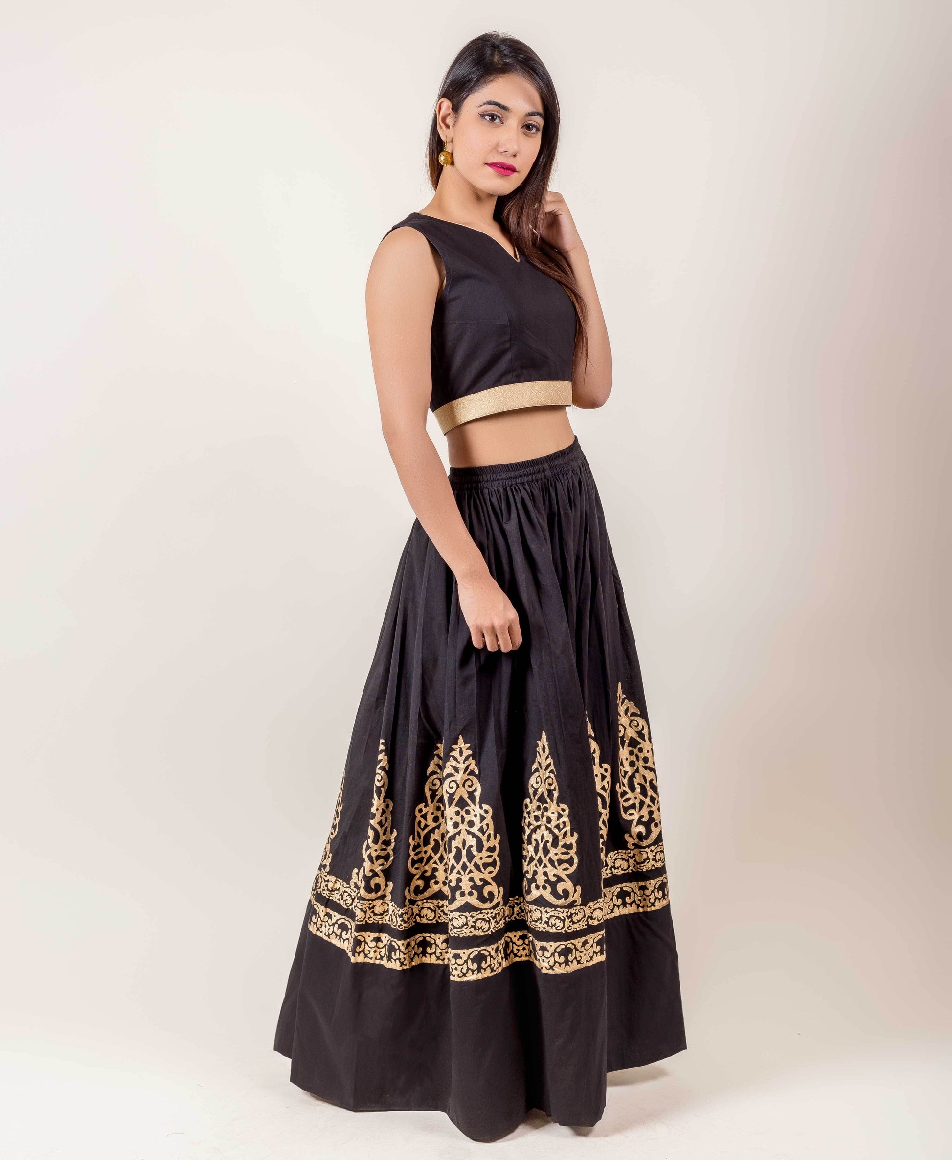 When it comes to dressing up in style, what could be better than this sheer piece of gorgeousness from ? Combination of red and black color with golden print makes this Indo western dress perfect for an impeccably pristine look. Get grooving in this amazing dress and pair it up with right accessories to fetch all the compliments.