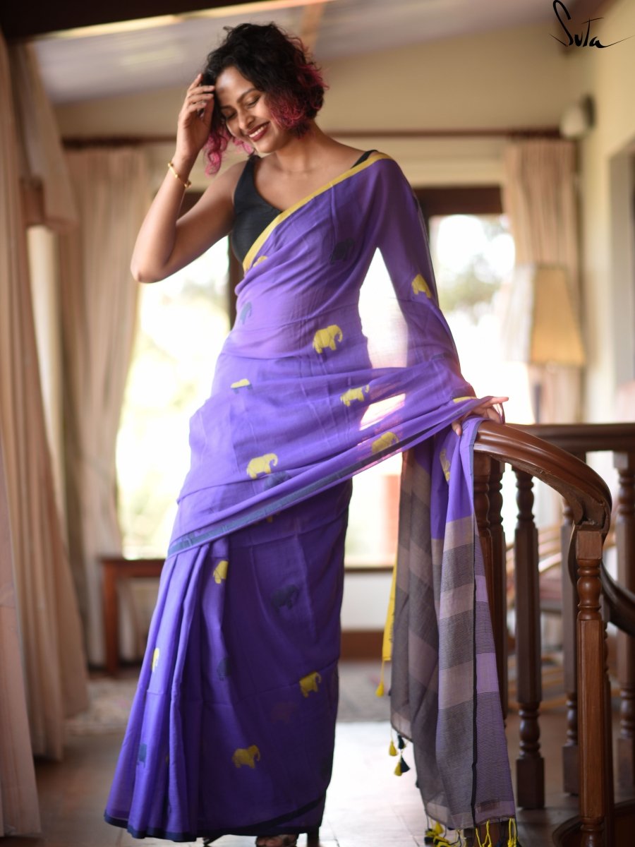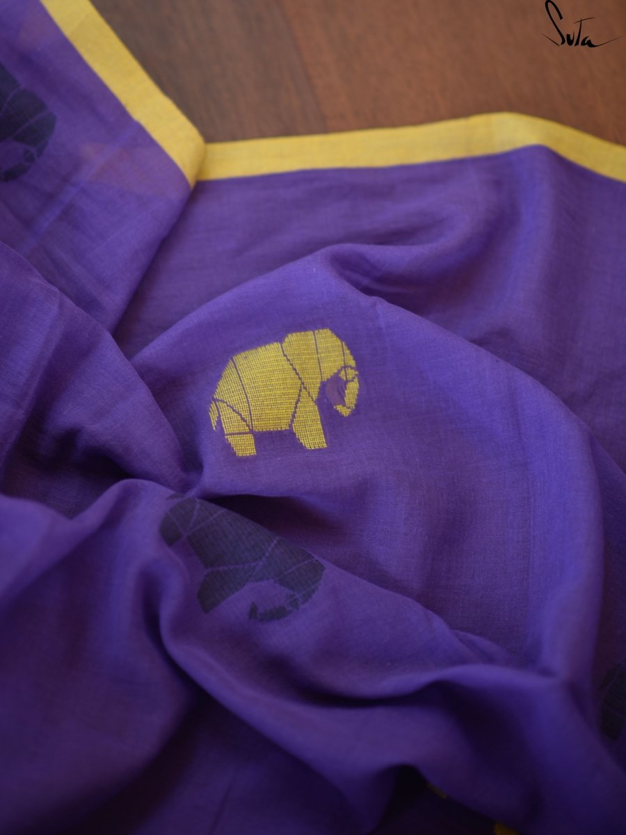 This collection is an exploration of some of our favourite animals and the traits that we humans share with them. The mystical connection that we share with these animals is expressed through Origami inspired shapes that come alive on the soft fabric. The intricate weaving is done by master artisans in West Bengal and a single saree takes approximately 1.5 weeks to be hand-spun and hand-woven. In fact, the entire family of a weaver works to create every product and are involved in various steps of weaving. The magical collection is a result of our designer staying with the artisans for over 3 weeks to understand their world and create this contemporary take on handloom sarees.